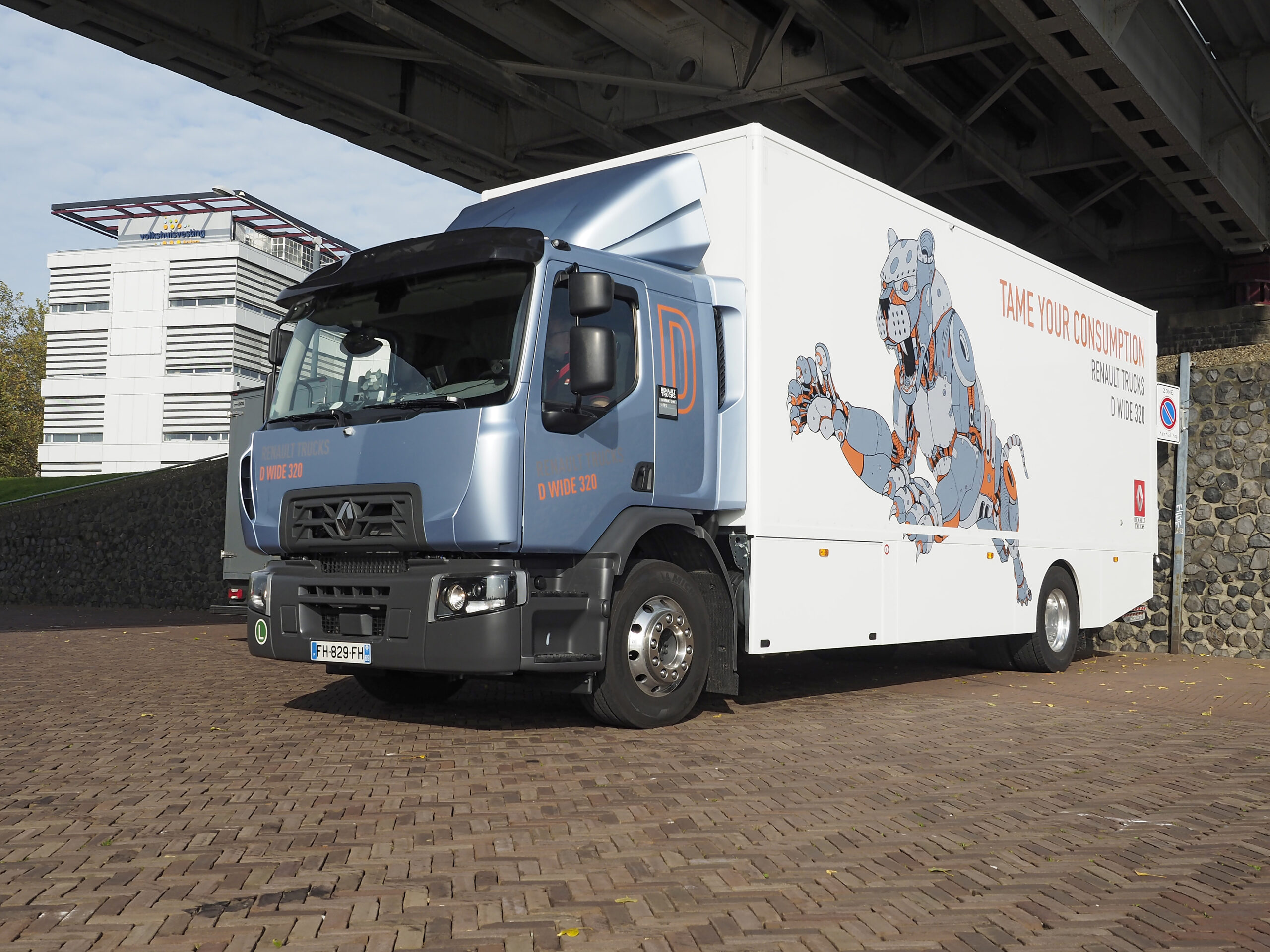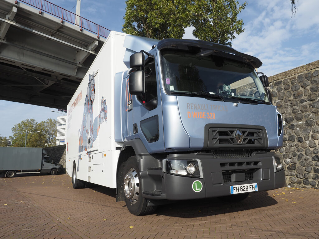 Met zijn gestileerde panter op de laadbak is de Renault D Wide een opvallende verschijning. Wat ook opvalt, is hoe prettig hij rijdt.