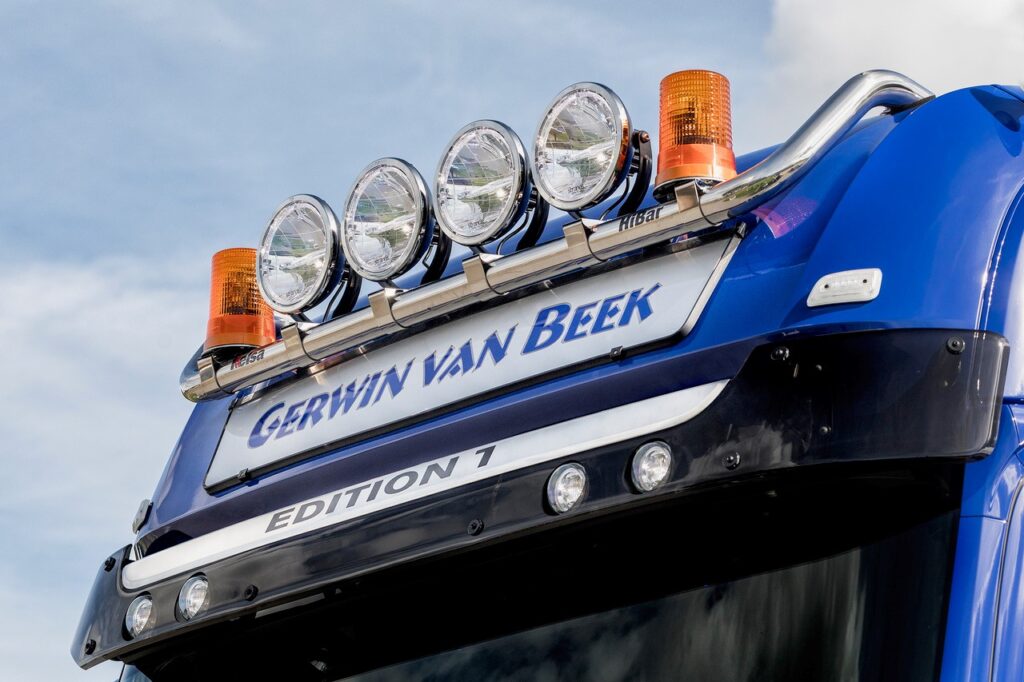 De speciale Actros kent een oplage van 400 stuks en trekker van Gerwin van Beek is nummer 1. Voorzien van het exclusieve ‘Edition 1’-opschrift op het chauffeursportier, instaptreden van rvs en het verlichte ‘EDITION 1’-instapembleem maken ondubbelzinnig duidelijk wie de nummer 1 op de weg is. Ook de zonneklep samen met de vier extra, geïntegreerde led-verstralers is exclusief.