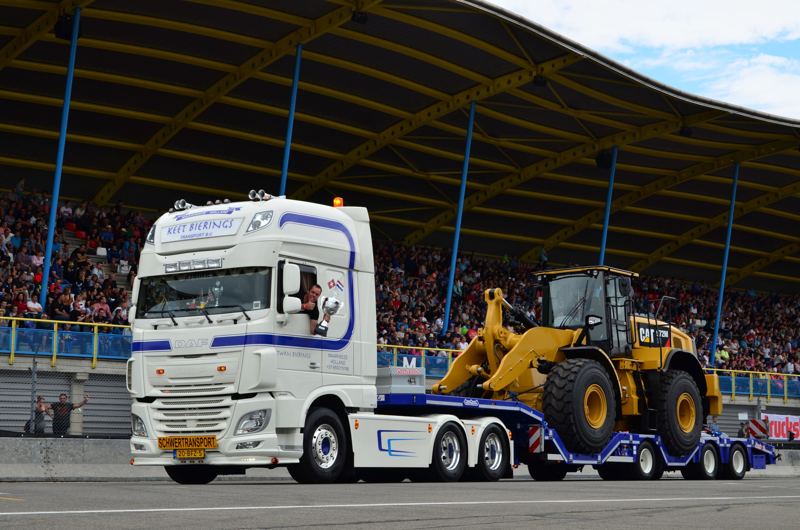 De DAF is een frisse verschijning met veel fraaie, maar ook functionele aanpassingen. Zo beschikt de 6×2 trekker over een bijpassende gereedschapskist en bestaat de mogelijkheid de trekker te voorzien van een ballastbak. In deze hoedanigheid trekt Rick regelmatig mobiele puinbrekers en andere recyclingmachines van het merk Komptech. Maar even zo vaak trekt de DAF diverse Nooteboom en Broshuis diepladers waarover Bierings de beschikking heeft.