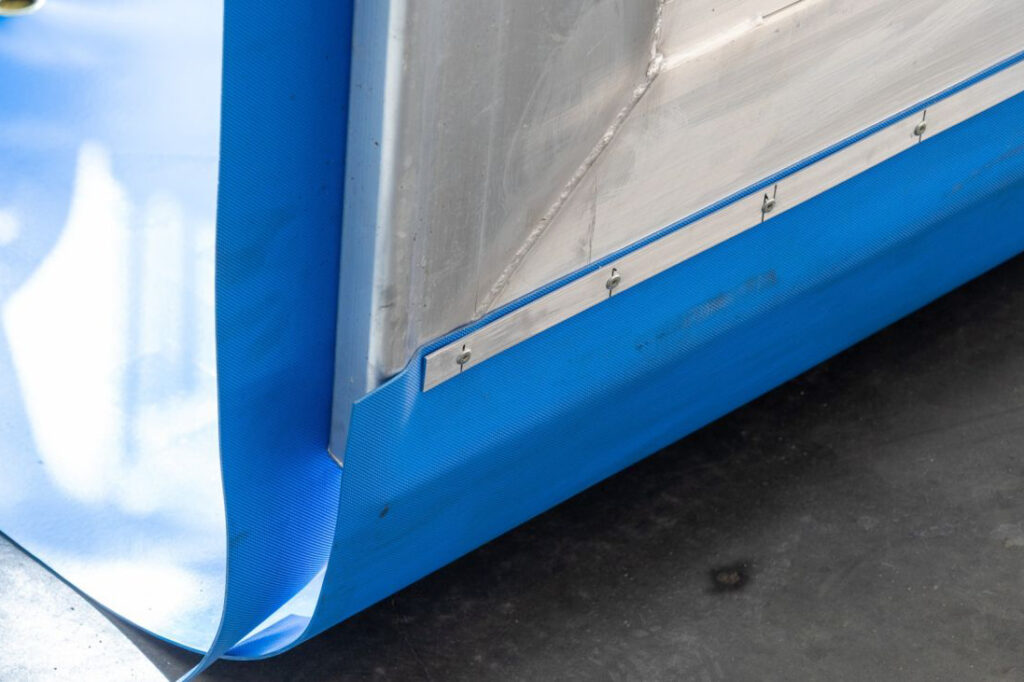 Het vernieuwde meeloopschot heeft minder bodemvrijheid, verlaagd van 100 mm naar 70 mm. Dit zorgt ervoor dat het onderste zeil beter functioneert, waardoor minder restlading in de trailer achterblijft. Dit geldt zowel voor conische als rechte trailers.