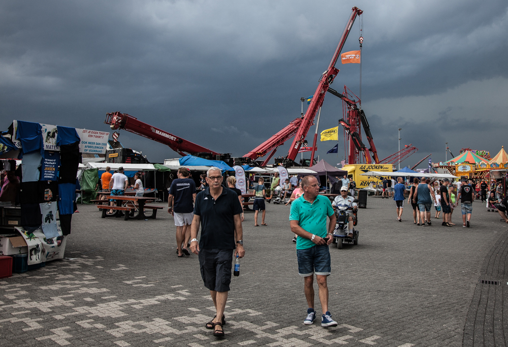 Donkere wolken boven het festivalterrein. Voor het eerst in lange tijd valt er een beetje regen. Het zorgt voor een aangename verkoeling. Nadat iedereen even geschuild heeft voor de bui, gaat alles gewoon weer verder. Alsof er niets is gebeurd.