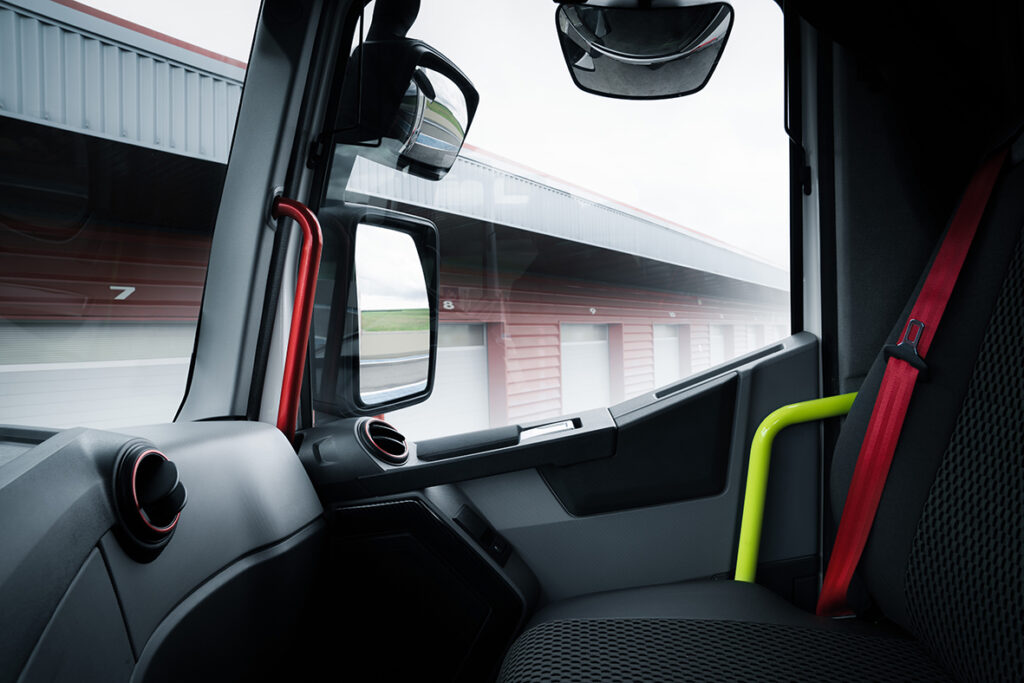 Niet alleen aan het exterieur is deze speciale editie te herkennen. Het interieur ademt de racewereld. Zo zijn de instapbeugels ook voorzien van de speciale rode en gele kleur. De chauffeur komt vervolgens in een exclusief carbon-look interieur, in een antracietgrijze uitvoering. De opbergruimten zijn voorzien van rode handgrepen. Tot slot zijn er verschillende opties mogelijk op het gebied van aanvullende carbon-elementen, LED-lichtaccessoires, luchthoorns of specifiek spuitwerk.