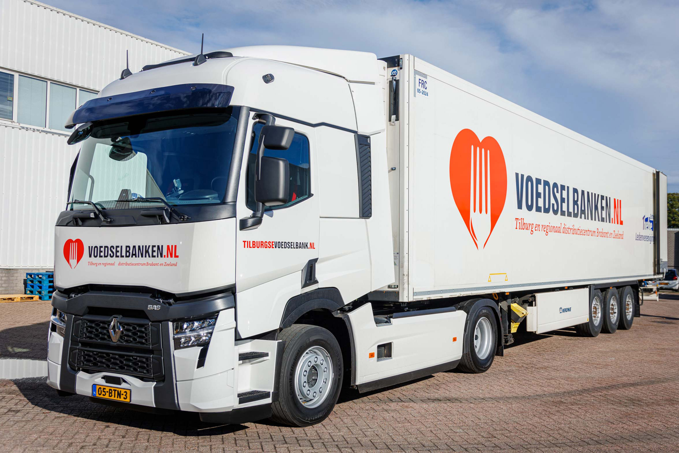 De nieuwe Renault T 440pk 4×2 trekker en oplegger zijn aangekocht ter vervanging van een 16 jaar oude combinatie. Deze voldeed niet meer aan de milieunormen en de kosten voor onderhoud waren hoog. Martin de Kok, voorzitter van de Tilburgse Voedselbank licht toe: “In 2017 hebben we reeds een nieuw voertuig aangekocht via BAS Truck Center. Naar aanleiding van de prettige ervaring destijds en de contacten met de werkplaats van BAS Truck Center in Tilburg, hebben we voor deze aanvraag wederom contact gelegd met BAS. BAS kon een totaaloplossing bieden voor de complete combinatie. De nieuwe Renault T kon op korte termijn geleverd worden en heeft een zuinige, betrouwbare aandrijflijn. De nieuwe oplegger werd geleverd via BAS World.” De nieuwe combinatie wordt voor alle denkbare ritten ingezet ten behoeve van het regionaal distributiecentrum en wordt bestuurd door verschillende chauffeurs (allen vrijwilligers).