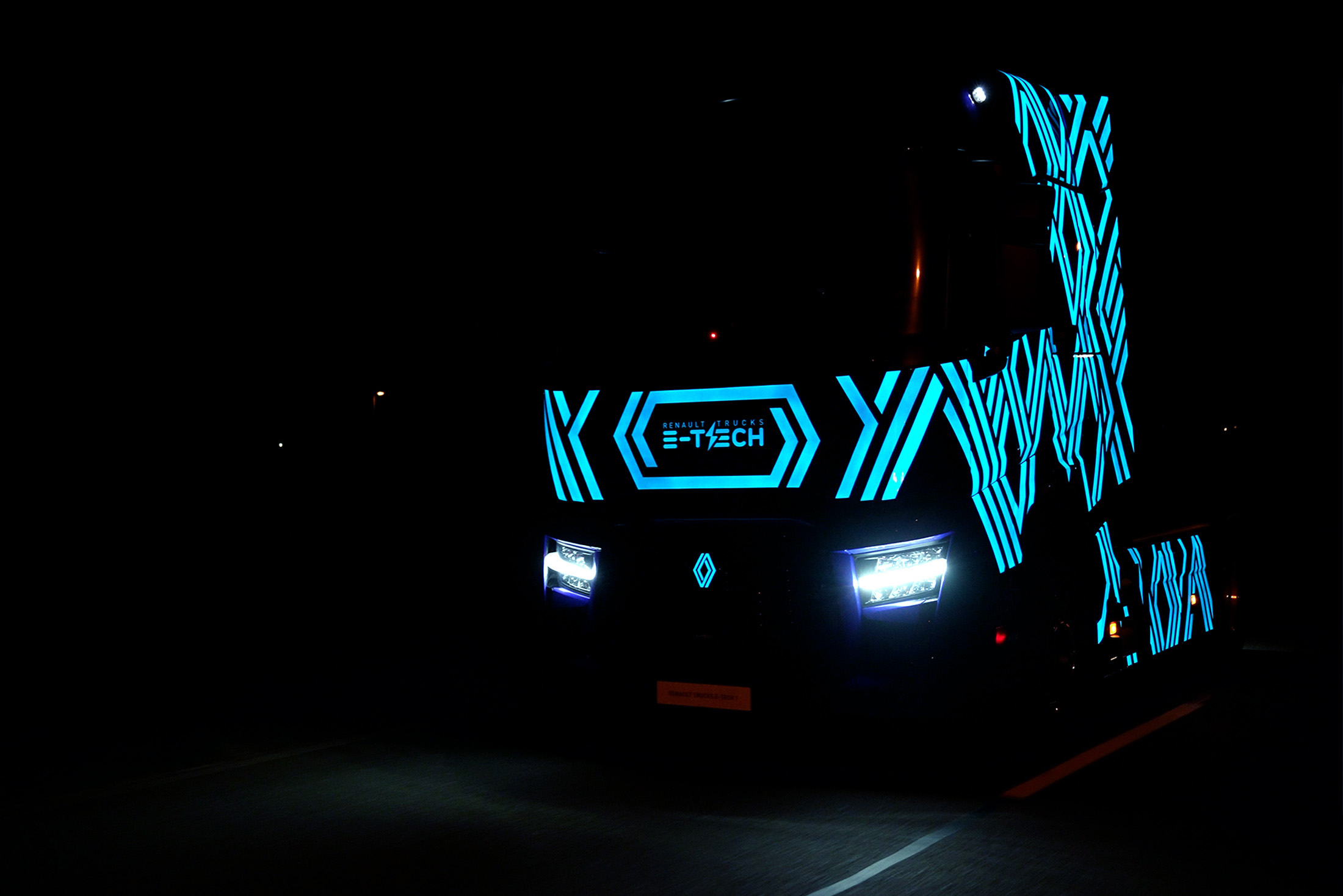 De Renault Trucks E-Tech T Diamond Echo is beschilderd met speciale LumiLor lak. Deze lak is gebaseerd op de Lumilor-technologie en is aangebracht door Demon Paint. Wanneer de lak wordt blootgesteld aan een elektrische prikkel (er loopt elektrische stroom doorheen), gaat hij gloeien zodat het design oplicht. Het unieke design komt het beste tot zijn recht in het donker, maar of dat op de openbare weg is toegestaan is ons niet bekend. Samen met design- en verfspecialisten is het design ontworpen.