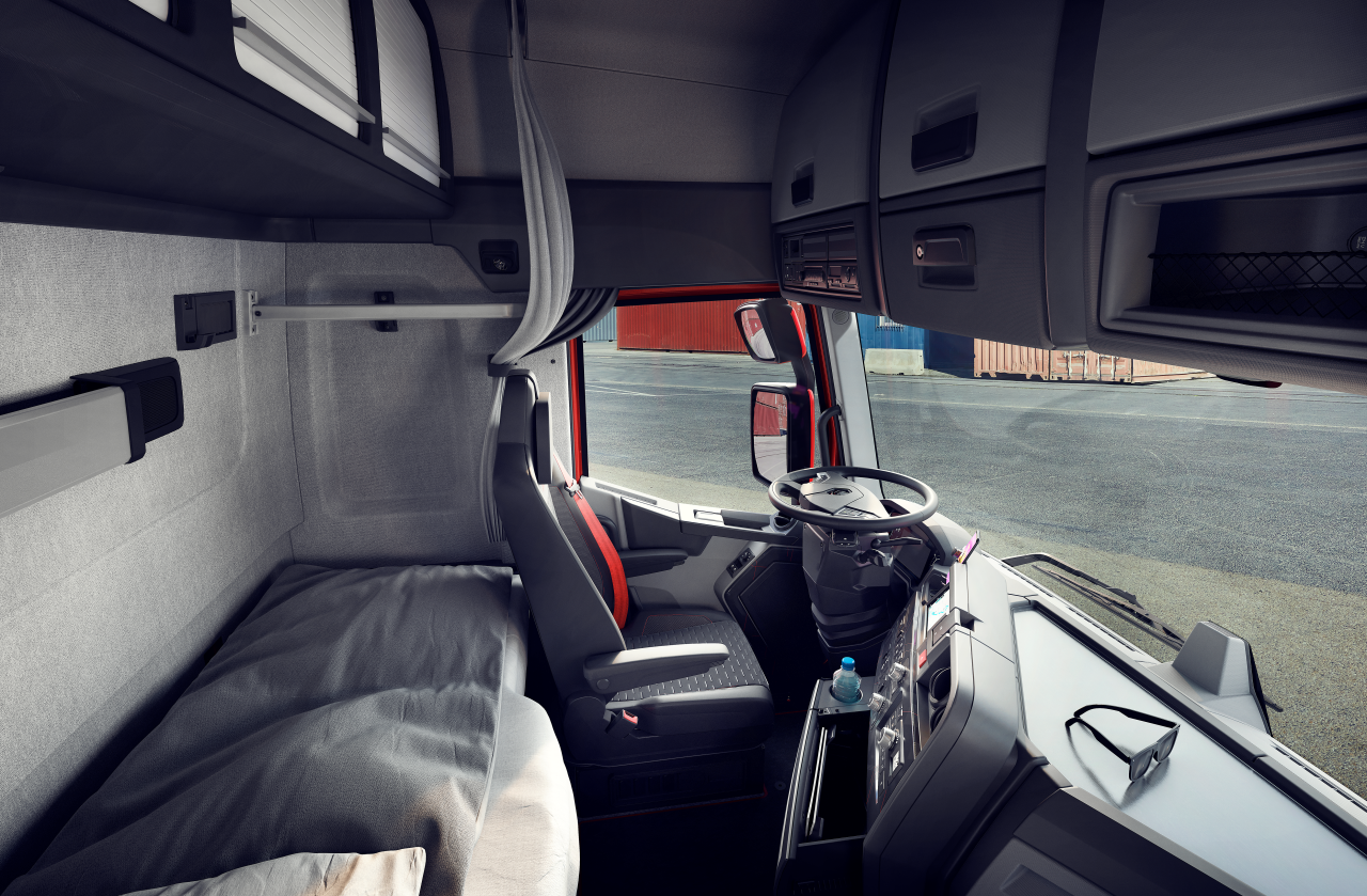 In het interieur ligt de nadruk op het comfort van de chauffeur. De nieuwe Renault Trucks hebben een nieuwe stuurwielverstelling die in drie richtingen te verstellen is, met een intuïtieve voetbediening en een startknop zonder sleutel. Zo kan de chauffeur het stuurwiel eenvoudig en snel aanpassen. Door het verdwijnen van het contactslot met sleutel is er meer vrije ruimte rondom de stuurkolom voor de benen.