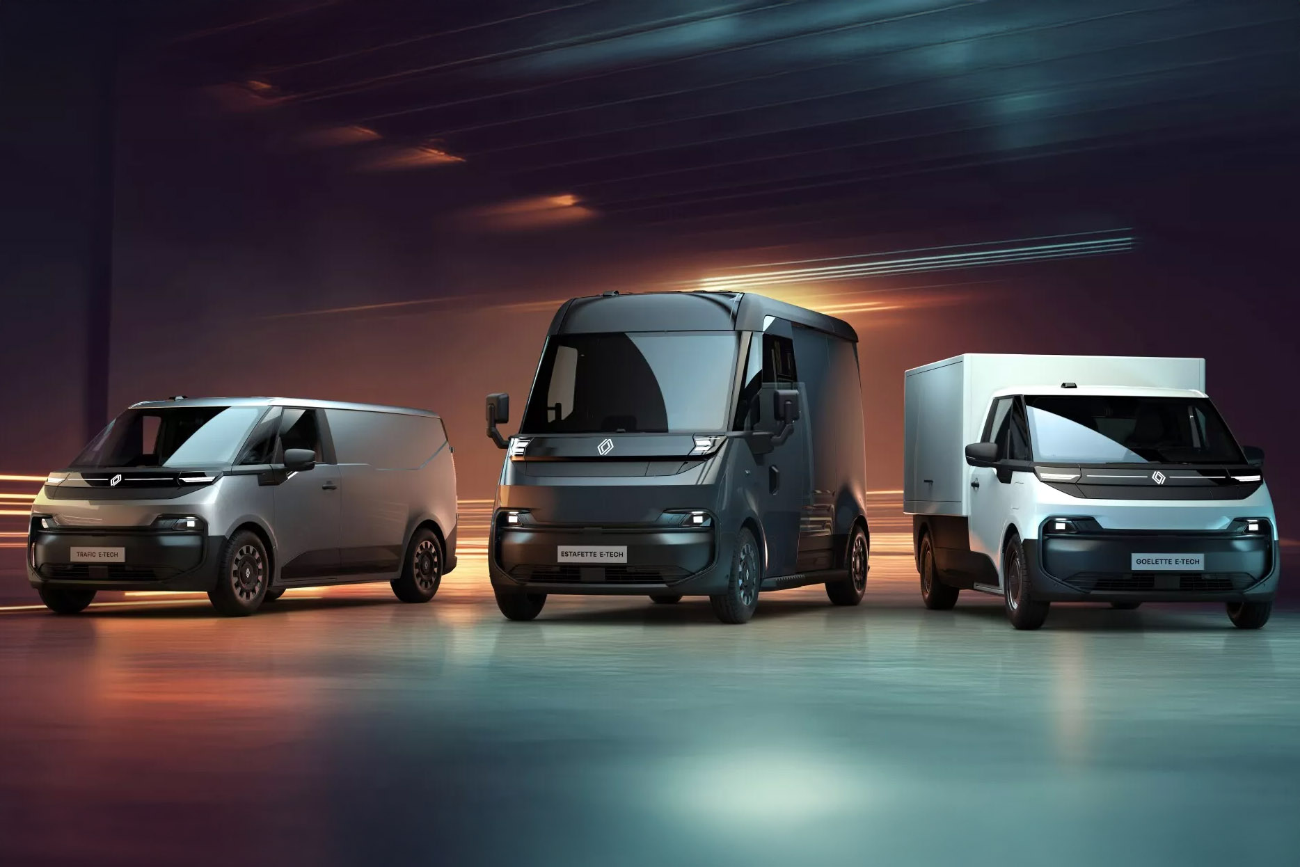 Renault breidt zijn aanbod van elektrische bedrijfswagens uit met drie nieuwe modellen: de Estafette, Goelette en Trafic. De voertuigen worden ontwikkeld op een nieuw platform. De productie vindt plaats in de Renault-fabriek in Sandouville, Frankrijk, en de marktintroductie staat gepland voor 2026.