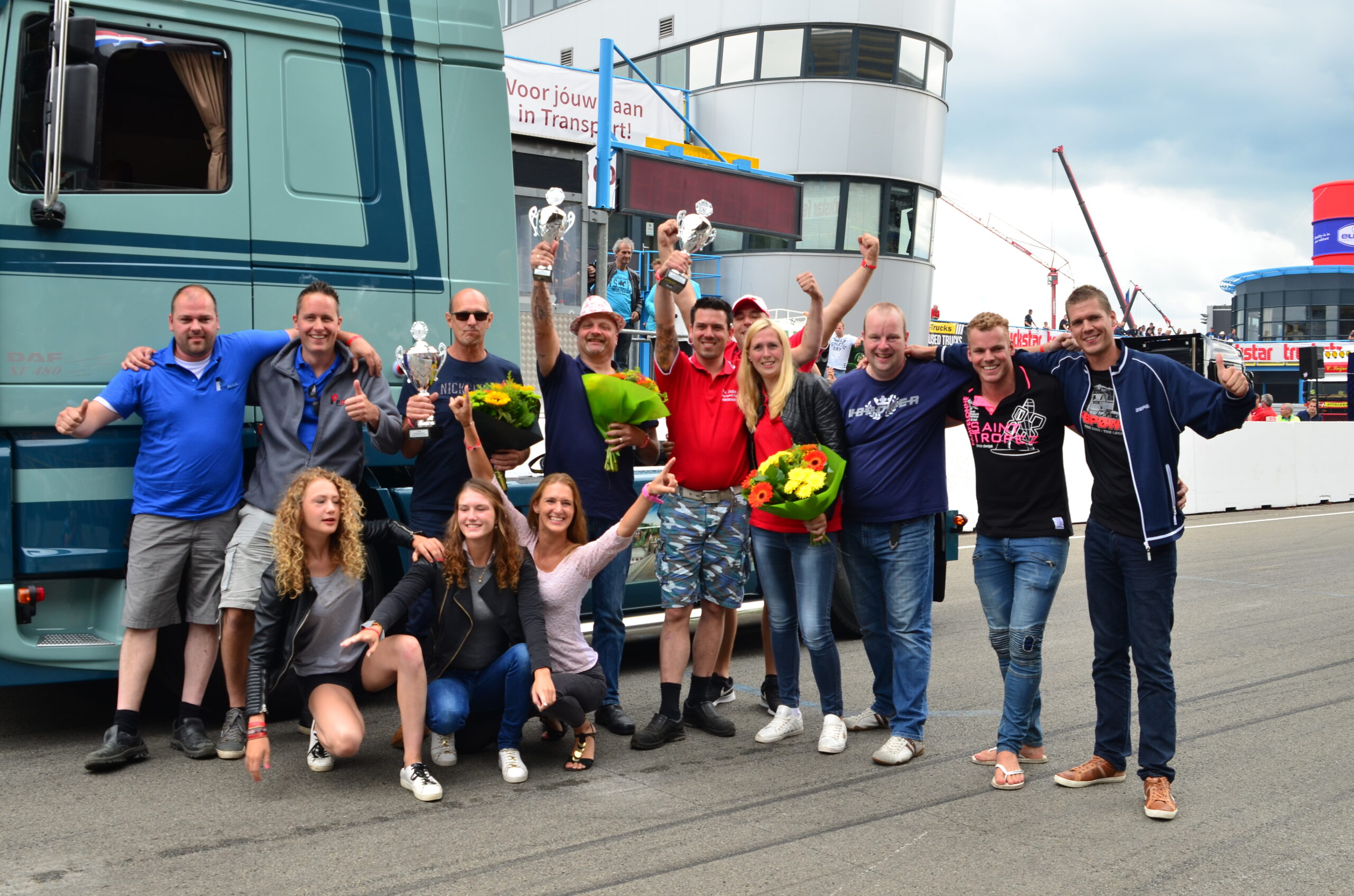 William van de Brink van P. van Setten Transport balde zijn vuisten in zijn Scania 164 toen hij hoorde dat hij de tweede plek had veroverd met 105.8 decibellen. Patrick van de Hoeven deed het in zijn Scania T500 ook zeker niet onverdienstelijk met zijn 105.2 decibellen!