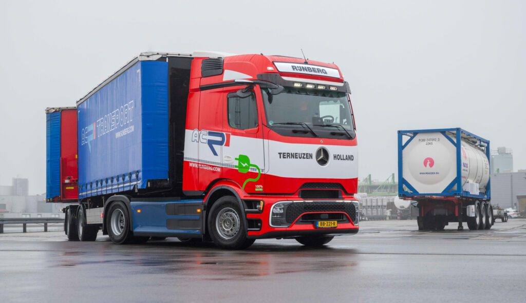 Rijnberg Transport uit Terneuzen nam eind vorig jaar als eerste transportbedrijf in Nederland een Mercedes-Benz eActros 600 als LZV in gebruik. Met de inzet van deze volledig elektrische trekker maakt het bedrijf emissievrij volumetransport mogelijk op de Nederlandse wegen.