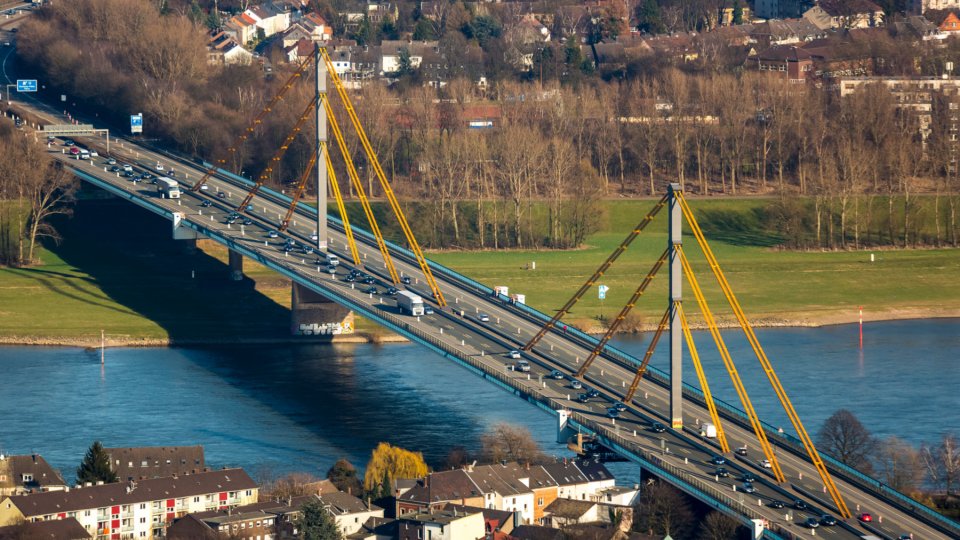 Werkzaamheden en weegplaats zorgen voor stremmingen Rijnbrug Duisburg
