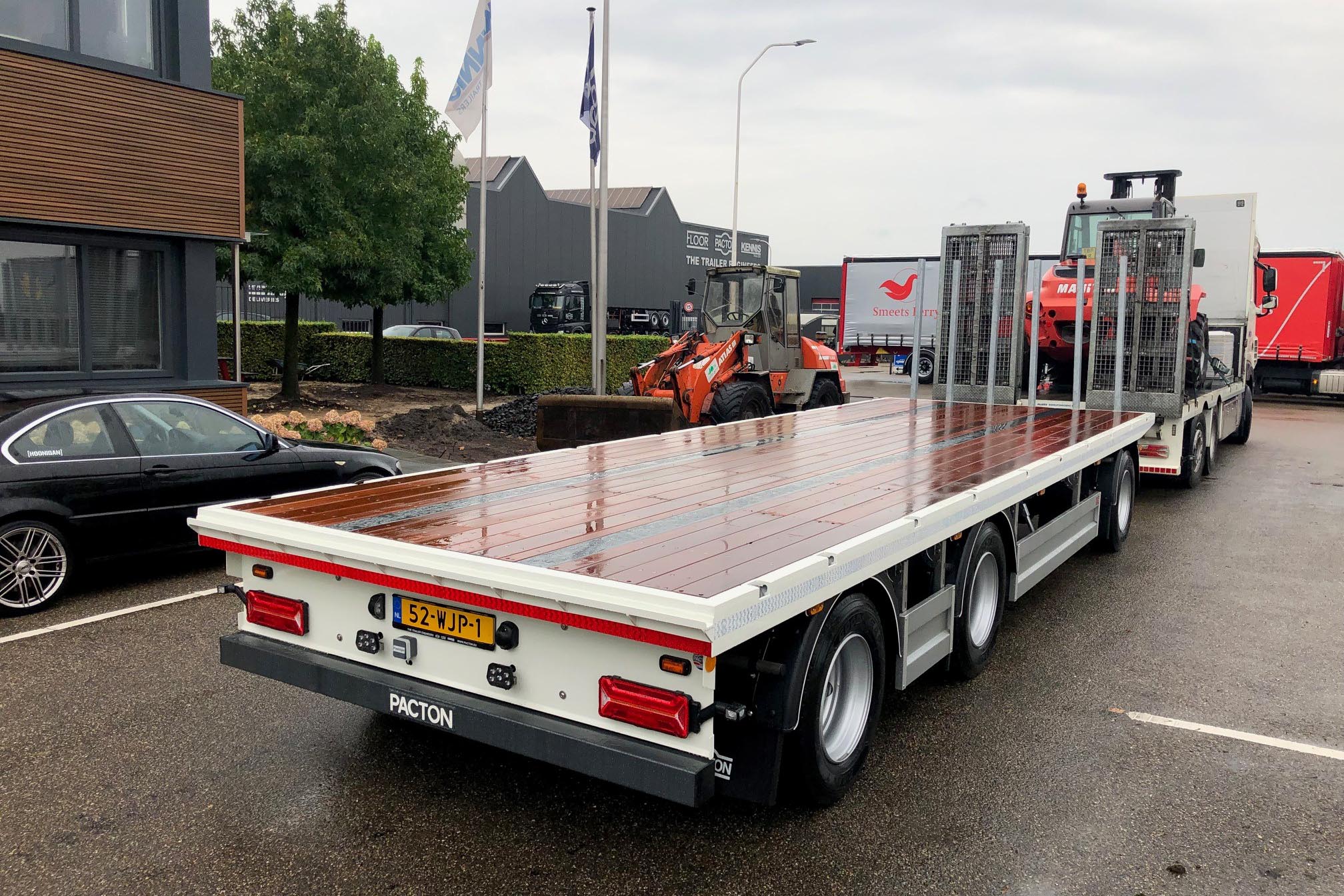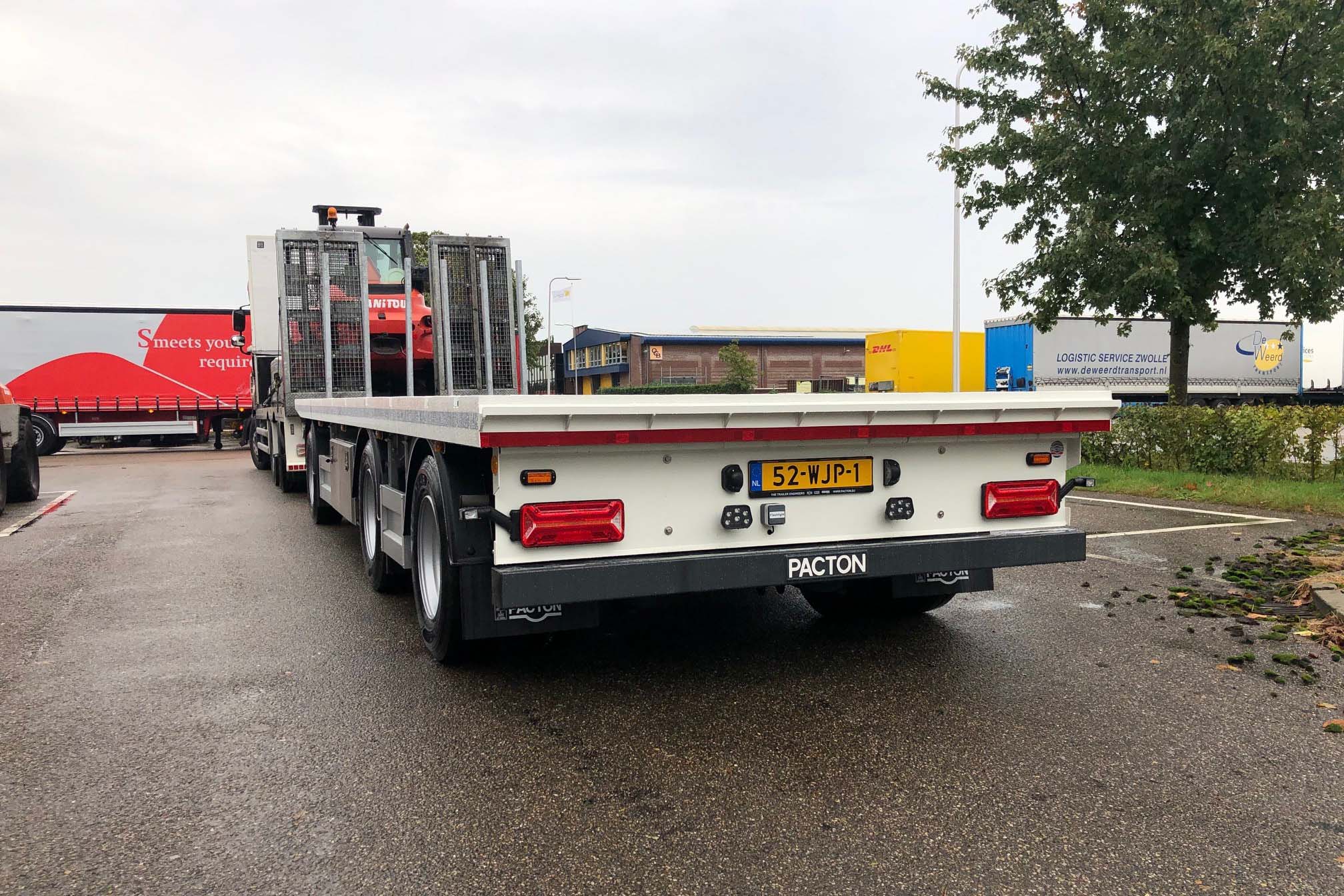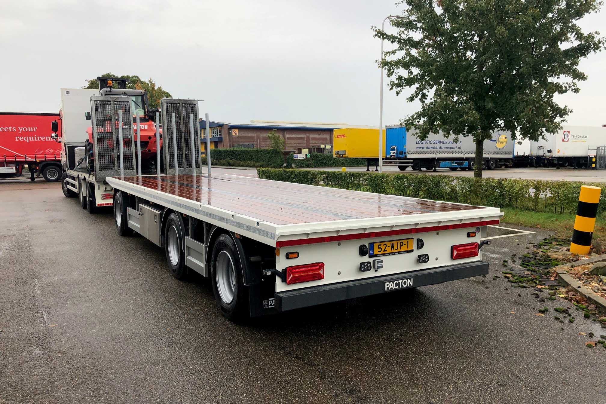 De Pacton aanhangwagen heeft een lengte van 9 meter. De drie BPW luchtgeveerde assen met trommelremmen hebben een technisch draagvermogen per as van 10 ton. De voorste achteras is liftbaar. De dubbellucht uitvoering steunt op GoodYear banden, 265/70 R 19.5. Het chassis is voorzien van een draaischamel met dubbelrijige draaikrans, met een draagvermogen van 10 ton en een mechanisch verstelbare triangel.