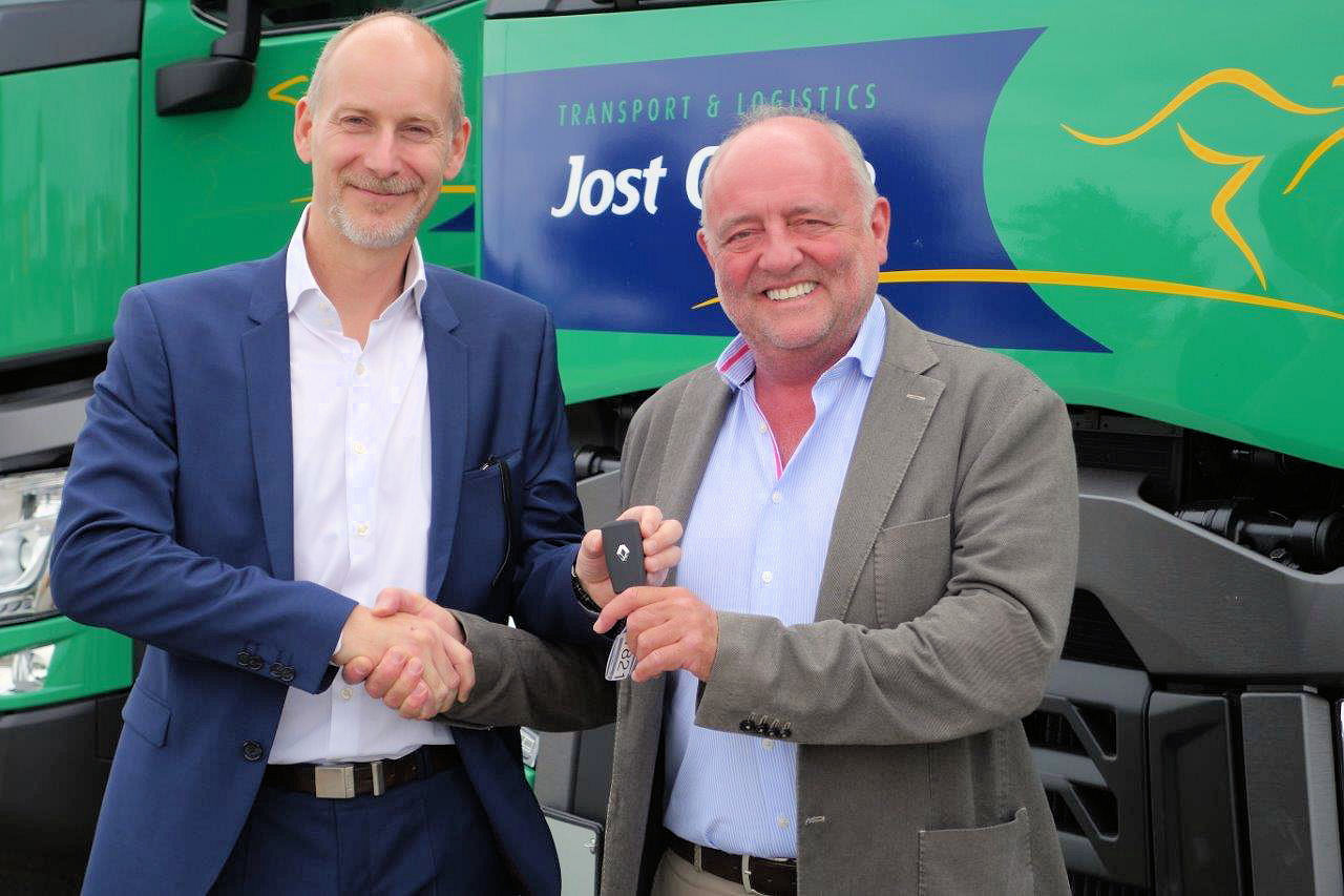De topman van de Belgische transportfirma Jost Group, Roland Jost (rechts op de foto met autosleutel), is vandaag voorwaardelijk vrijgelaten.
