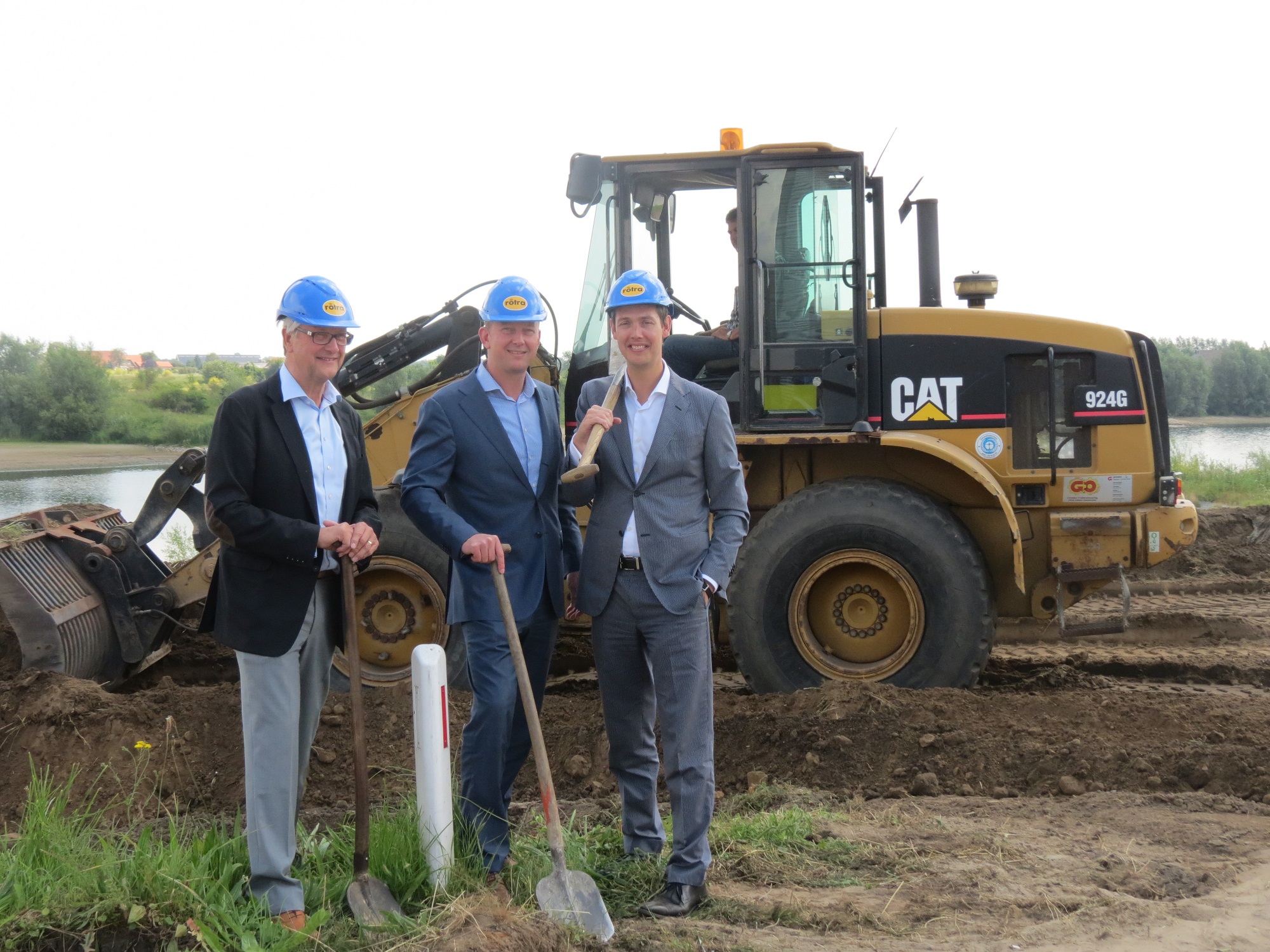 Foto: Rotra directie bij de (toekomstige) container terminal. Links Gerard Roelofsen, in het midden Harm Roelofsen en rechts Machiel Roelofsen.