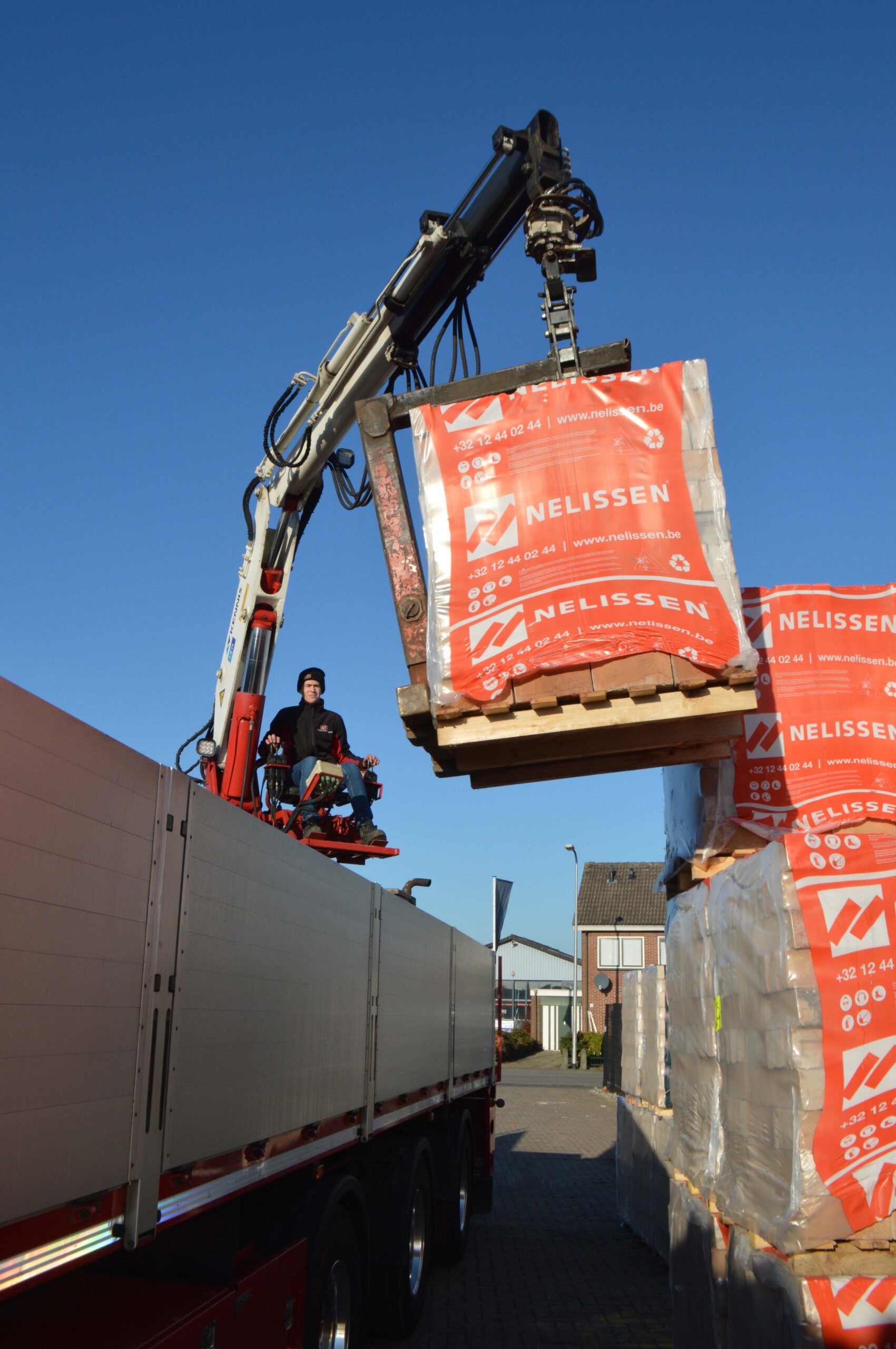 Zijn werk is het voorladen en verplaatsen van opleggers. Wessels Transport heeft verspreid over Rijssen, en in de directe omgeving, diverse locaties waar bouwproducten worden gemaakt of trailers kunnen worden gestald. Vanochtend heeft Niels al diverse opleggers verplaatst, als wij hem ontmoeten is hij net bezig spanbanden over een oplegger te gooien waar heftruckchauffeur Henry Hartgerink een aantal bokken met kozijnen op heeft geplaatst. Henry is zeer te spreken over de inzet van Niels. “Hij is snel en precies,” zegt hij. “En hij is leergierig; hij luistert goed als je hem wat uitlegt. Wat nog beter zou kunnen? Soms vind ik dat hij wat rustiger zou mogen worden. Hij is soms wat te gretig. Maar mooi om te zien dat zo’n jonge knaap er al zoveel plezier in heeft.”