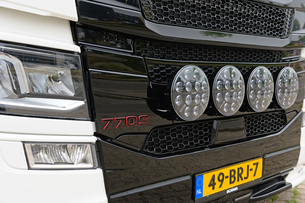Dus besloot Rowan voor een V8 te gaan. “Ik dacht eerst aan een Scania 650S. Alleen werd ik getriggerd door een intrigerend filmpje op Facebook. Dat was iets met een zeven. Maar een 730 is er al dus moest het een nieuwe zijn. Toen bleek dat het een nieuwe V8 met 770pk én SCR-only techniek betrof en toen wist ik het.”
