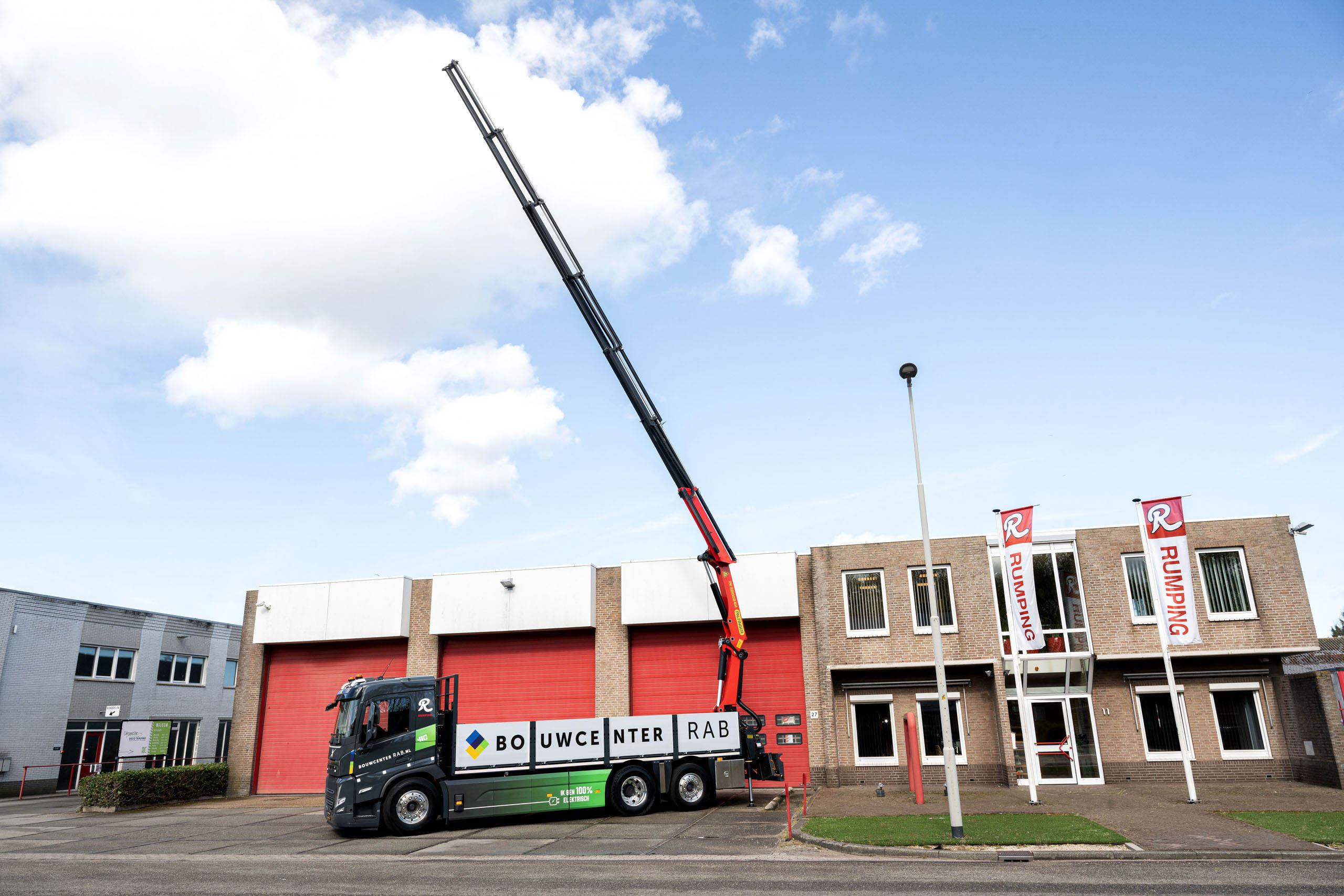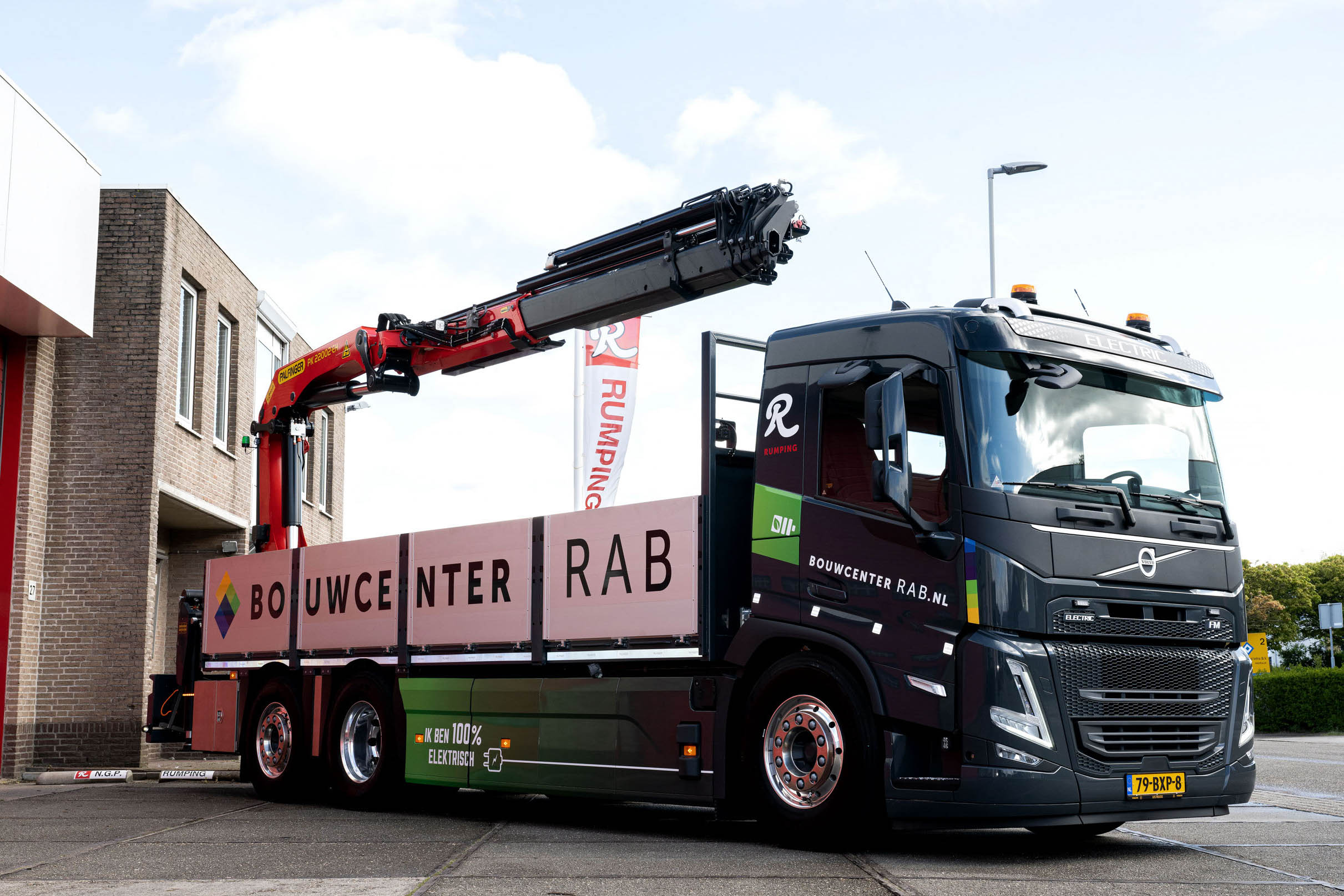J.W.J. Rumping & Zonen B.V. heeft een Volvo FM Electric 6×2 kraanauto in gebruik genomen voor de distributie van bouwmaterialen. Het bedrijf rijdt met deze truck voor een bouwmaterialenhandel in Noord-Holland. De Volvo FM Electric is geleverd door Volvo Trucks-dealer LVS Trucks Beverwijk.