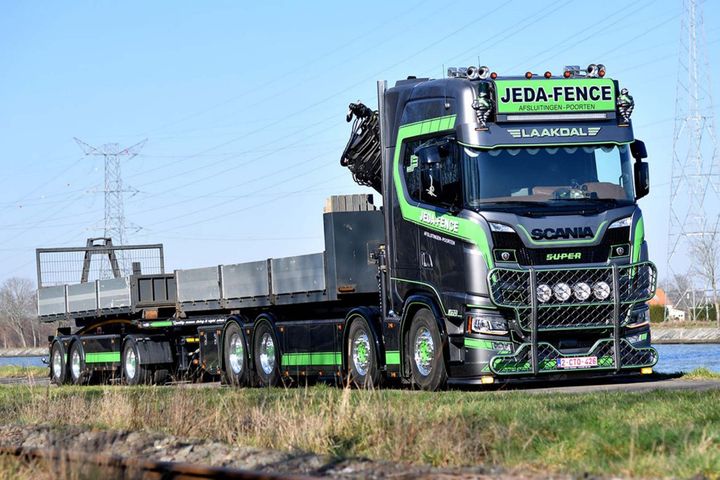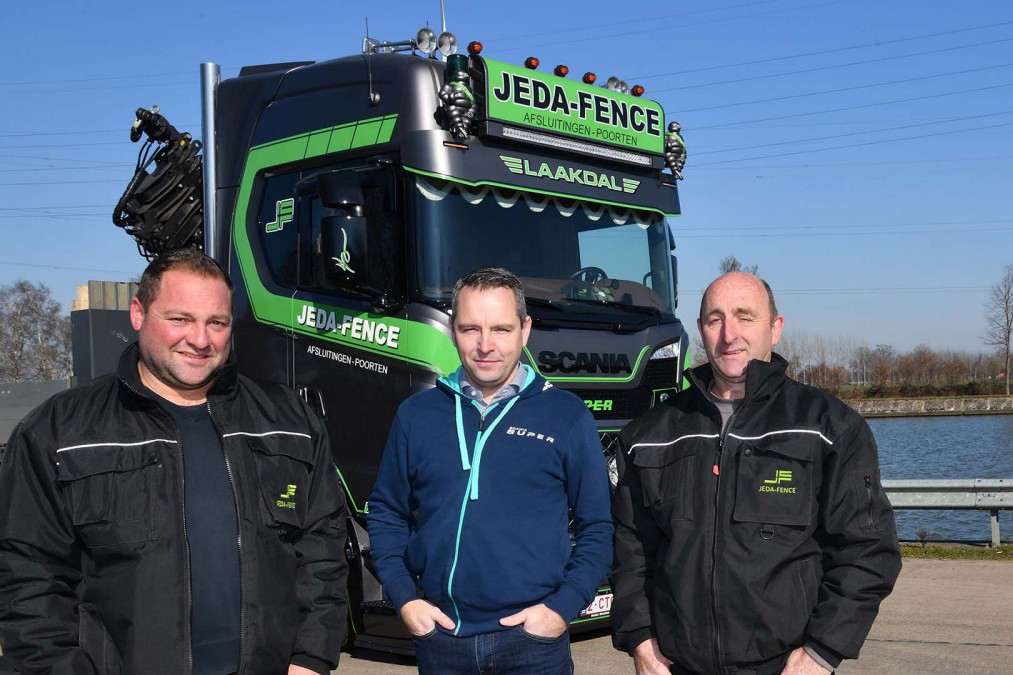 Jeda-Fence uit Laakdal is al vijftien jaar lang gespecialiseerd in het maken en plaatsen van hekken en poorten op maat, vooral bij B2B-klanten. Naast een vloot met bestelwagens voor de plaatsingsploegen heeft het bedrijf ook een vrachtwagen in dienst. “Die dient niet enkel om het materiaal te leveren, maar is meteen ook het uithangbord van de zaak,” zegt Jef Dauwen, die Jeda-Fence oprichtte. “Daarom gaan we ook altijd voor bijzondere modellen, zoals onze nieuwe Scania. Deze is extra speciaal, want we bestelden hem als cadeau voor de zestigste verjaardag van mijn vader, die onze vaste chauffeur is.”