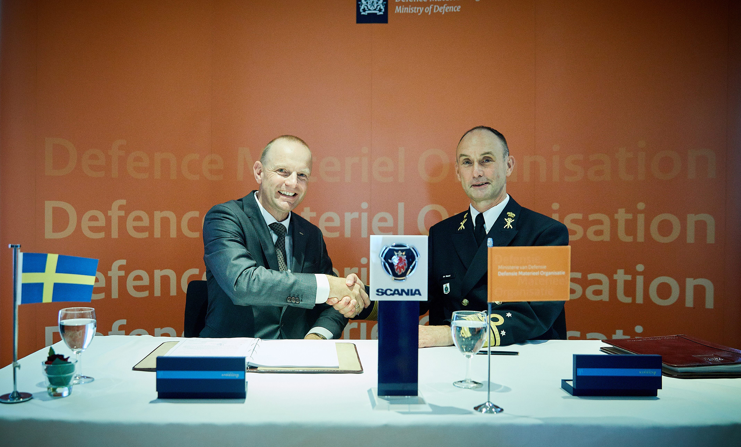 Beide partijen ondertekenden gisteren het contract dat voorziet in de levering van 2.037 New Generation Scania’s aan de Nederlandse strijdkrachten. Het nieuws was in juni reeds voortijdig uitgelekt. Scania geeft met de overeenkomst het Eindhovense DAF het nakijken.