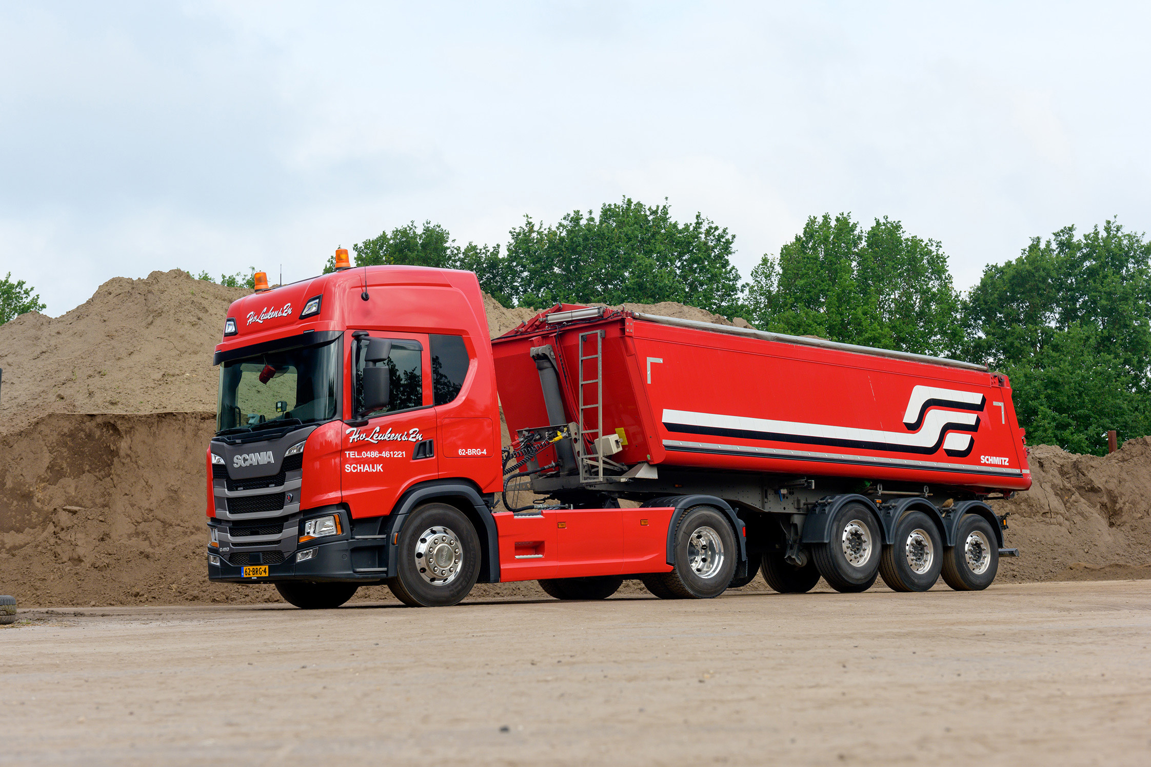 Zand- en grinthandel Van Leuken nam recent een nieuwe Scania G410 4×2 trekker in gebruik ter versterking van de transportafdeling van het bedrijf. Deze keer werd er gekozen voor een G-cabine met een hoog dak en een standairco. Het bedrijf wil de auto zo meer flexibel kunnen inzetten op bijvoorbeeld meerdaagse ritten.