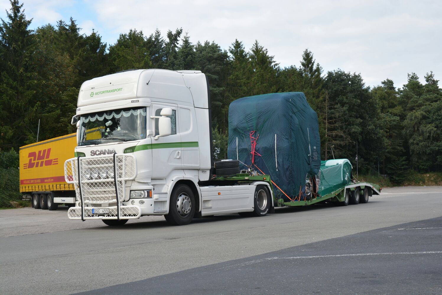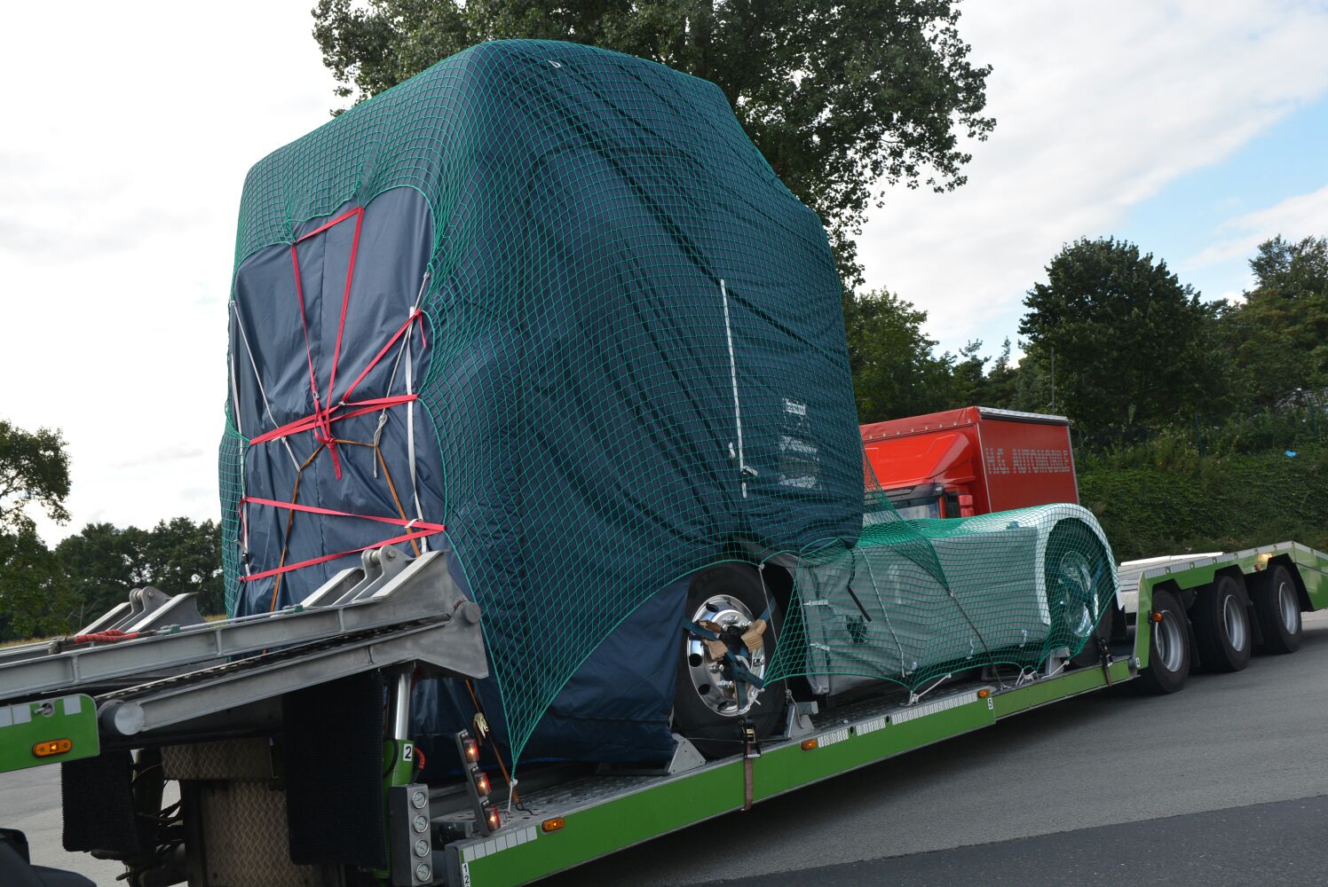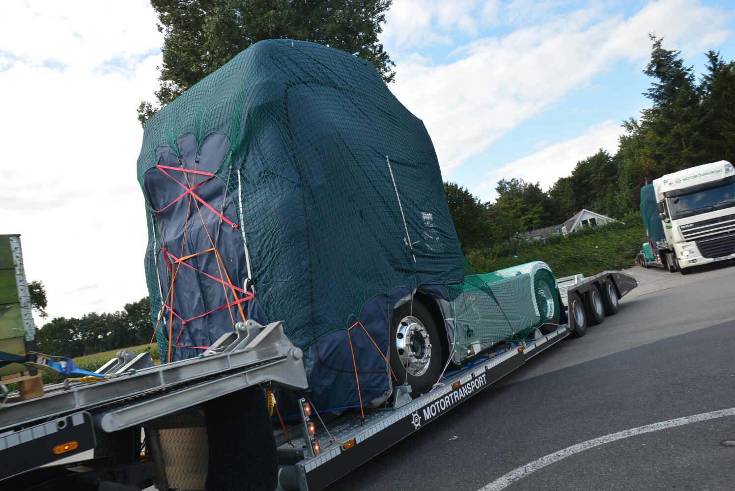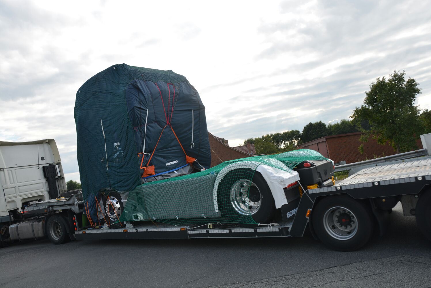 Truckstar-medewerker Marco Bloem stuitte deze week bij toeval op een heus konvooi van trucktransporters die onderweg waren met zeven nieuwe Scania’s. Alle trekkers waren volledig afgedekt, waardoor zelfs de introductiekleur niet te achterhalen is. Duidelijk is wel dat de vormgeving overeenkomt met de foto’s van  schaalmodellen die eerder uitlekten.