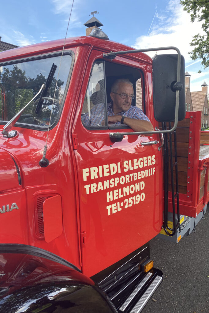 De Scania L80 krijgt een mooie plek op het bedrijfsterrein van Friedi Slegers Transport in Helmond en wordt ingezet voor een leuke oldtimerrit en andere doeleinden. “En we gaan natuurlijk zo nu en dan met opa een rondje rijden,” besluit Teun.