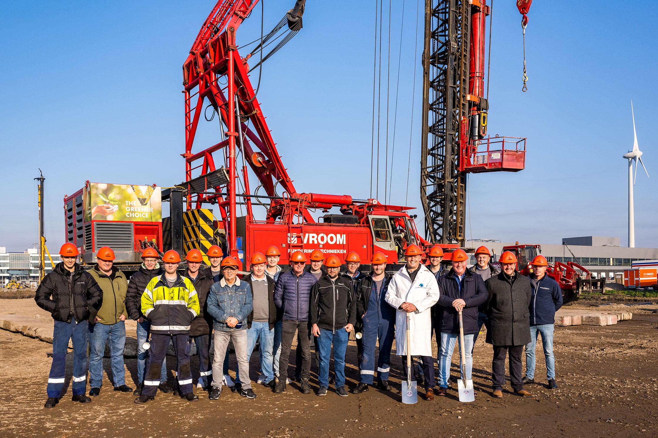 Directeur Marketing & Communications Léon Groot, Regiodirecteur Sven van Velzen, Managing Director Janko van der Baan en Director Services Nico van Aauwermeiren staken namens het voltallige bedrijf een schep de grond in om de start van de bouw te markeren. Het totale kavel op industrieterrein Honderdland in Maasdijk heeft een oppervlakte van 1,2 hectare. Hierop wordt een ultramoderne werkplaats van 1.200 m2 met zes poorten gebouwd. Drie van deze poorten krijgen een put; waaronder één voor APK. Daarnaast krijgt het pand ook een magazijn en kantoorruimte over twee verdiepingen en een comfortabele wachtruimte voor de chauffeurs.