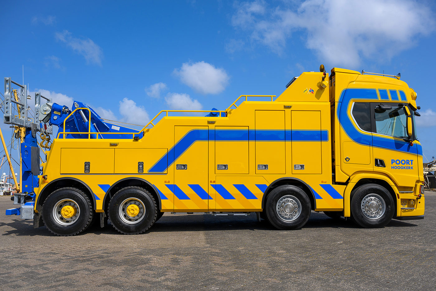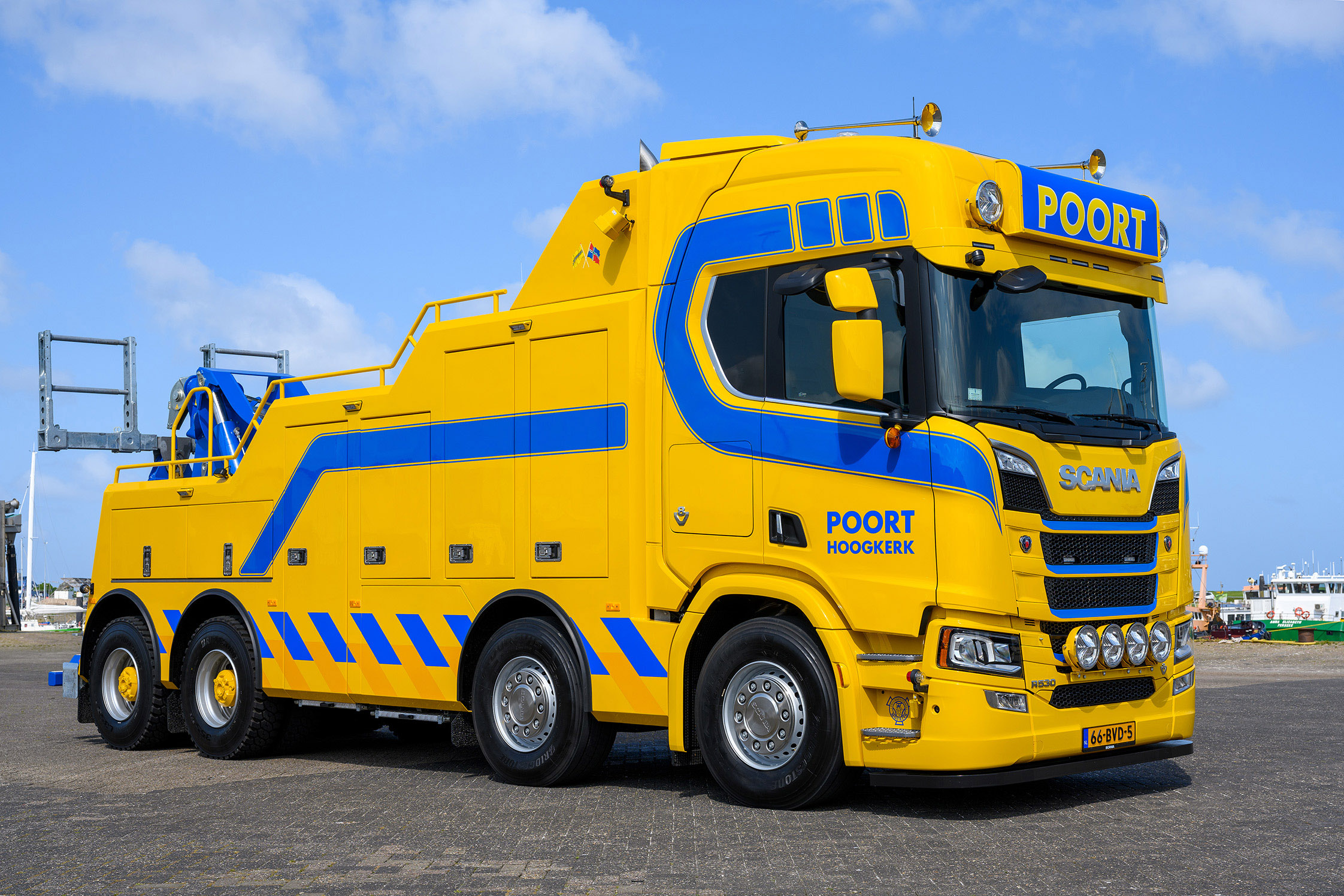 Takel- en bergingsbedrijf Poort uit Hoogkerk (Groningen) nam recent een nieuwe zware Scania R530 8×4 als zwaar bergingsvoertuig in gebruik.
