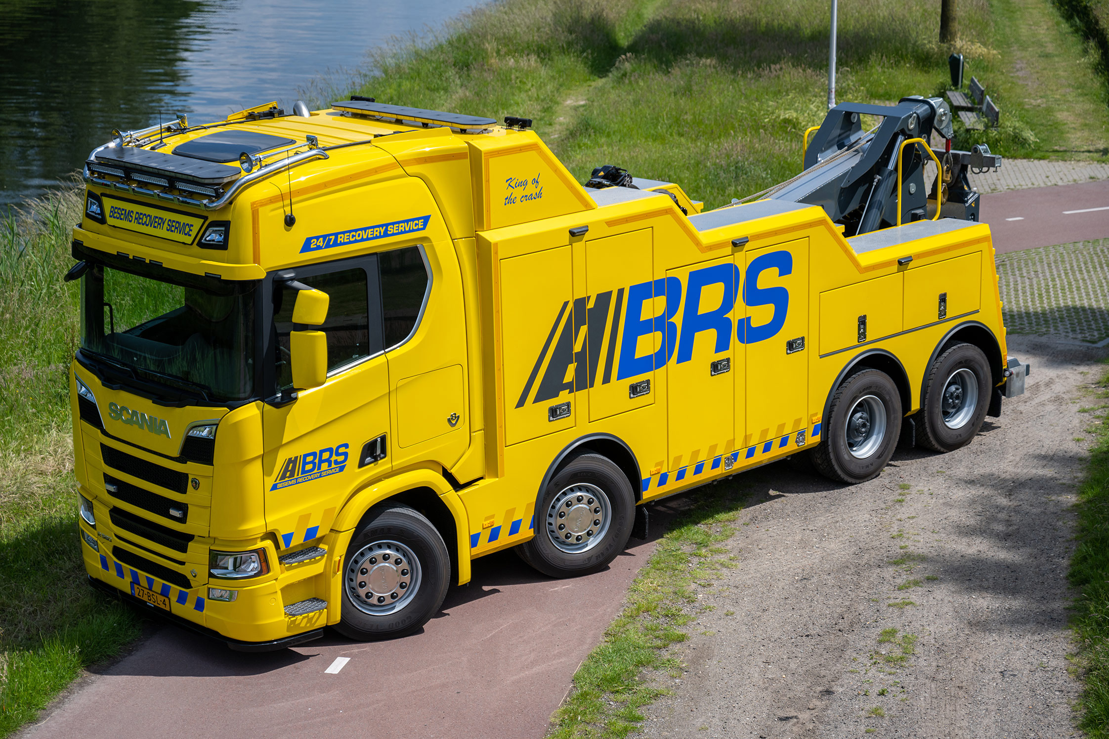 Besems Recovery Service (BRS) uit Tilburg nam onlangs een bijzondere zware Scania R580 8×4 bergingstruck in gebruik. De auto wordt voornamelijk ingezet voor het Incident Management rondom Tilburg en voor bergingswerk in de regio.