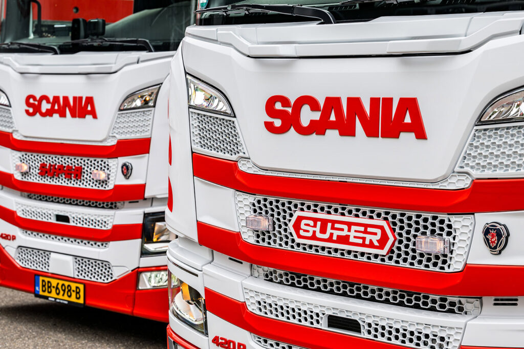 De nieuwe Scania trucks zijn geleverd door Scania Alkmaar en in nauw overleg met de chauffeurs samengesteld. Voorzien van onder meer standkoeling, een koelkast en het meest uitgebreide veiligheidspakket, bieden ze een goed uitgeruste werkplek.