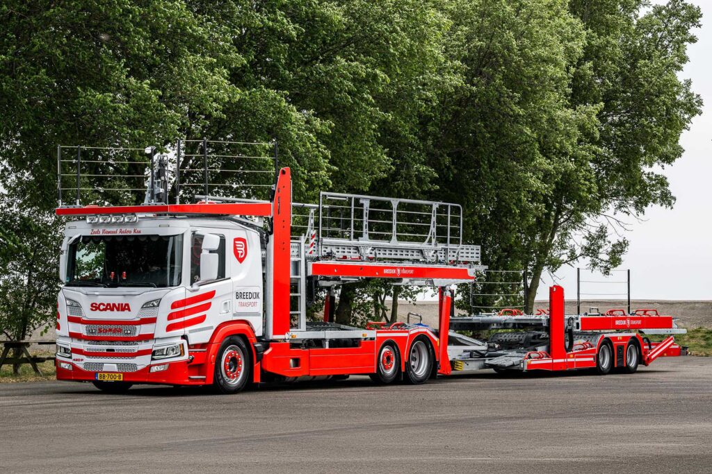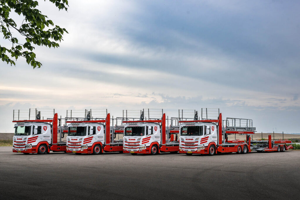 Breedijk Transport heeft recent vier nieuwe Scania 420P autotransporters in gebruik genomen. De voertuigen zijn in nauw overleg met de chauffeurs samengesteld. Directeur Marcel Vlaar licht toe: “Onze lading bevindt zich ook boven de cabine. Met de ruimte die overblijft, wil je het de chauffeurs zo aangenaam mogelijk maken. Scania biedt op dit niveau de meest comfortabele cabine.”