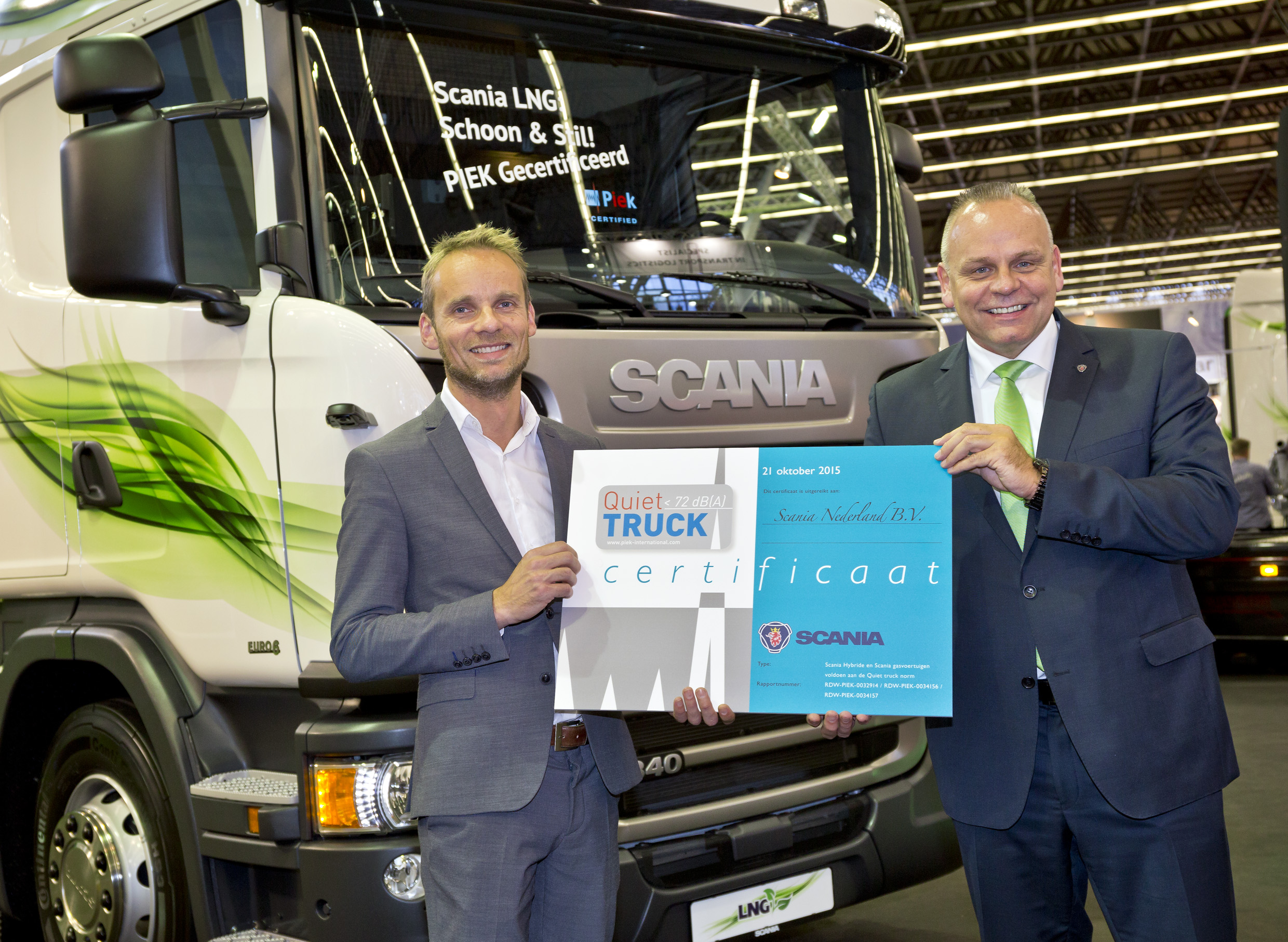 Scania heeft voor haar gastrucks en de Hybrid P320 het Quiet Truck-certificaat ontvangen van Stichting Piek-Keur.