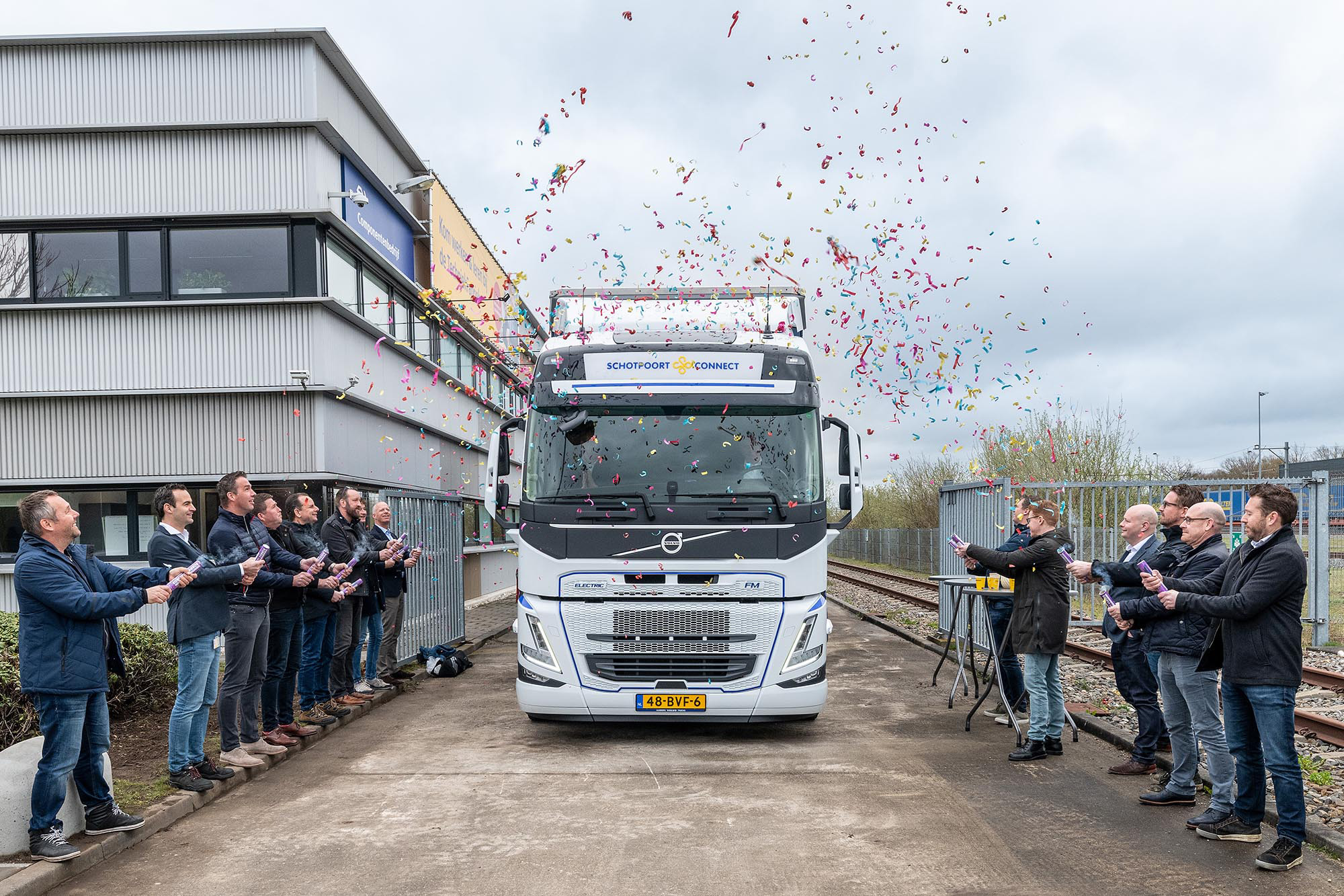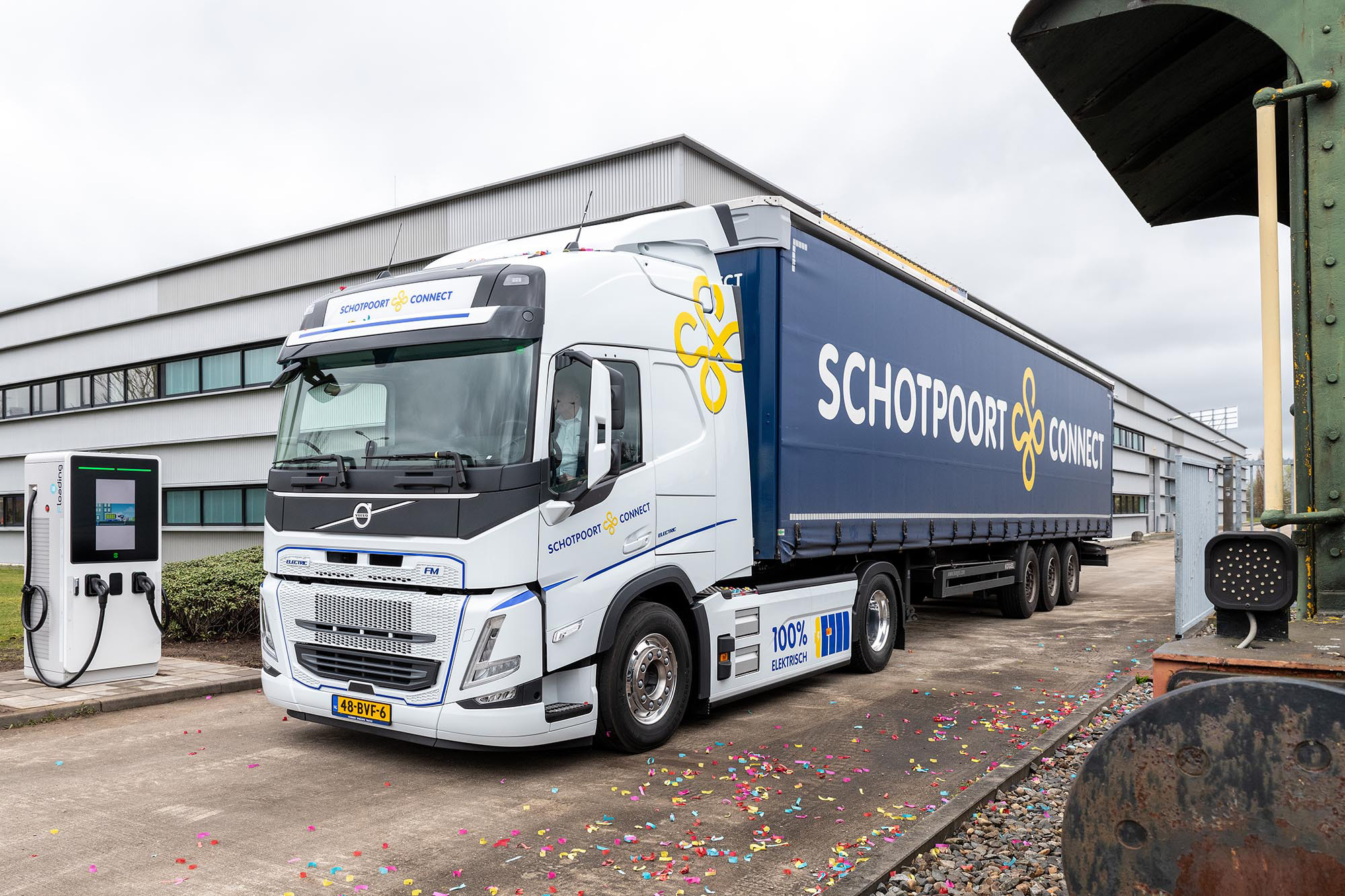 Schotpoort Connect gaat met deze Volvo FM Electric 4×2-trekker treinonderdelen tussen NS-magazijnen vervoeren. Met de inzet van een elektrisch voertuig werkt het bedrijf verder aan het verkleinen van zijn CO2-footprint.