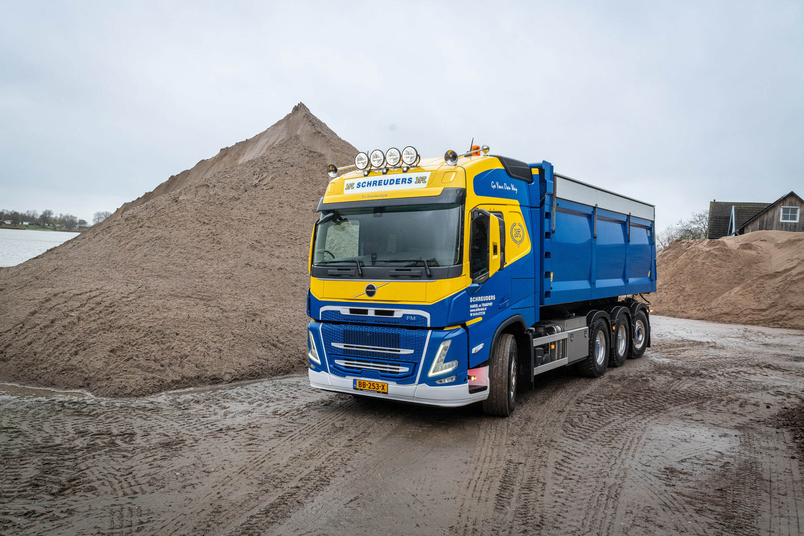 De nieuwe Volvo FM is de derde truck in deze specifieke configuratie binnen het familiebedrijf. Schreuders Handel en Transport specialiseert zich al decennialang in het vervoer van grond-, weg- en waterbouwmaterialen, bouwstoffen, siermaterialen voor tuinen, opritten en terreinen en grondstromen voor particulieren en bedrijven. De voertuigen worden bovendien ingezet bij saneringen.