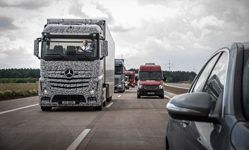 Inmiddels hebben zich al diverse partijen gemeld die op de Nederlandse wegen testritten willen uitvoeren met zelfrijdende voertuigen. TNO wil in samenwerking met onder andere DAF, havenbedrijf Rotterdam en Transport en Logistiek Nederland komend voorjaar starten met proeven waarbij vrachtwagens virtueel in een treintje gaan rijden. Transport en Logistiek Nederland organiseert dit najaar samen met Scania een demonstratie van zelfrijdende vrachtwagens.
