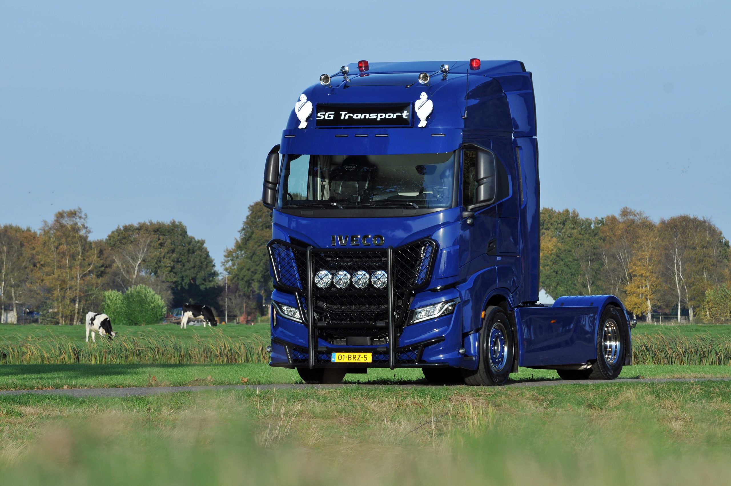 De afgelopen periode is de auto flink onder handen genomen bij Cornelis Bedrijfsauto’s in Hoogeveen, waar de opbouw plaatsvond. Cornelis zal ook het onderhoud gaan verzorgen. Onder meer een fraaie bullbar, extra lampen, zijskirts en luchthoorns zorgen ervoor dat de Iveco S-Way naadloos past in de huisstijl van SG Transport. De trailer in de look-and-feel van NVO Transport sluit daar prachtig bij aan, want deze is ook voorzien van de fraaie donkerblauwe kleur die kenmerkend is voor SG Transport. Het spuitwerk vond plaats bij Van der Meulen in Hoogeveen.