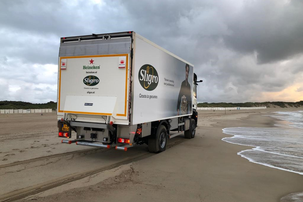 Heiwo heeft de afgelopen jaren veel geïnvesteerd in nieuwe productie van machines. Daardoor zijn er, naast standaard carrosserieën, nog meer mogelijkheden om op wens van de klant te produceren. Zo ook deze twee ‘bierwagens’ van logistiek dienstverlener Simon Loos. beide laadbakken zijn voorzien van dikkere zijwanden, een dunnere vloer met vloerluik, speciale voorwand met een nis voor de koelmachine en bevestigingsbeugels voor luchttanks. Tevens beschikken de vrachtwagens over driedelige achterdeuren waarbij de middelste deur kan openen terwijl de laadklep naar boven staat.