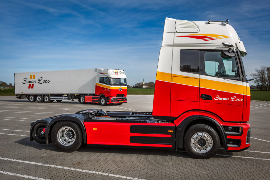 De vijf trekkers met de naloopas van Estepe maken deel uit van een grotere order van in totaal 75 trucks. Afgelopen week zette Simon Loos een handtekening voor nog eens 75 elektrische Mercedes-Benz trekkers. Naar verwachting worden een aantal daarvan ook met deze naloopas geleverd. Simon Loos zet deze specifieke trucks in voor zwaardere distributiewerkzaamheden, onder meer voor drankentransporten en van dock naar dock netwerkvervoer. Juist bij deze types transport kan de asbelasting met name op de achteras al snel te hoog oplopen. Met de inzet van elektrische trucks wordt dit nog uitdagender, omdat een elektrische aandrijflijn nu eenmaal een stuk zwaarder is dan een conventionele aandrijflijn met brandstofmotor. Dat gewicht wordt opgevangen door de extra as die Estepe toevoegt: de toegestane achterasdruk gaat van 11,5 naar 16 ton. Simon Loos’ Fleet Manager Wim Roks: “Met deze naloopas kunnen we met alle soorten lading rijden met standaard trailers. Zelfs met zware deelladingen tegen het kopschot. Daardoor hoeven we niet te pionieren met het verplaatsen van de steunpoten van de trailer.”