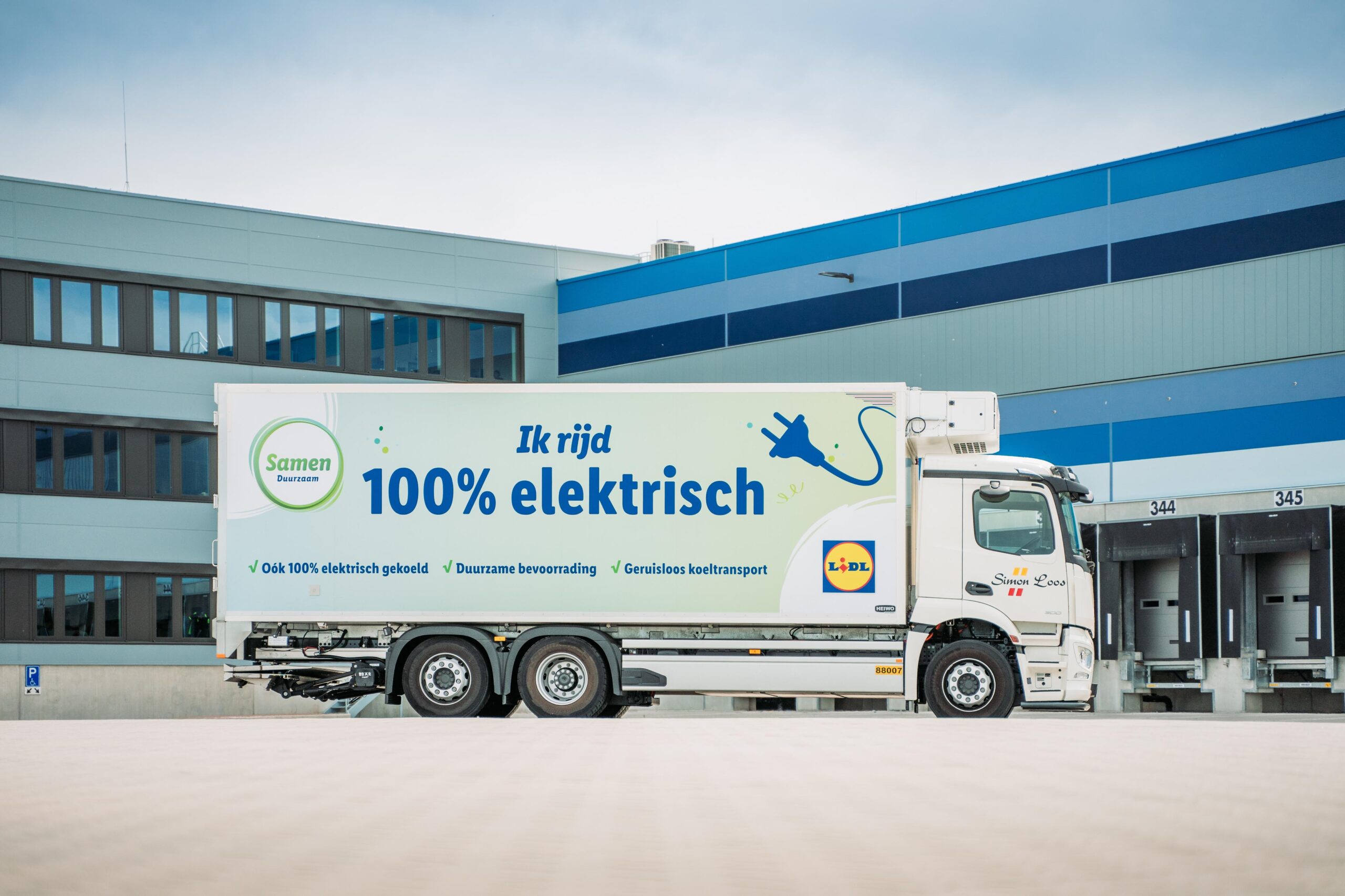 De eActros heeft een batterijcapaciteit van 336kWh en kan met behoud van een veilige marge zo’n 250 kilometer rijden op een volle acculading. De truck levert dagelijks CO2-neutraal boodschappen bij verschillende Lidl-supermarkten in de Amsterdamse milieuzone en wordt opgeladen op het eigen terrein van het distributiecentrum van Lidl in Almere. Wim Roks: “De energie voor het opladen van de eActros is onder andere afkomstig van de bijna 7.000 zonnepanelen die op het dak van het distributiecentrum zijn geïnstalleerd.”