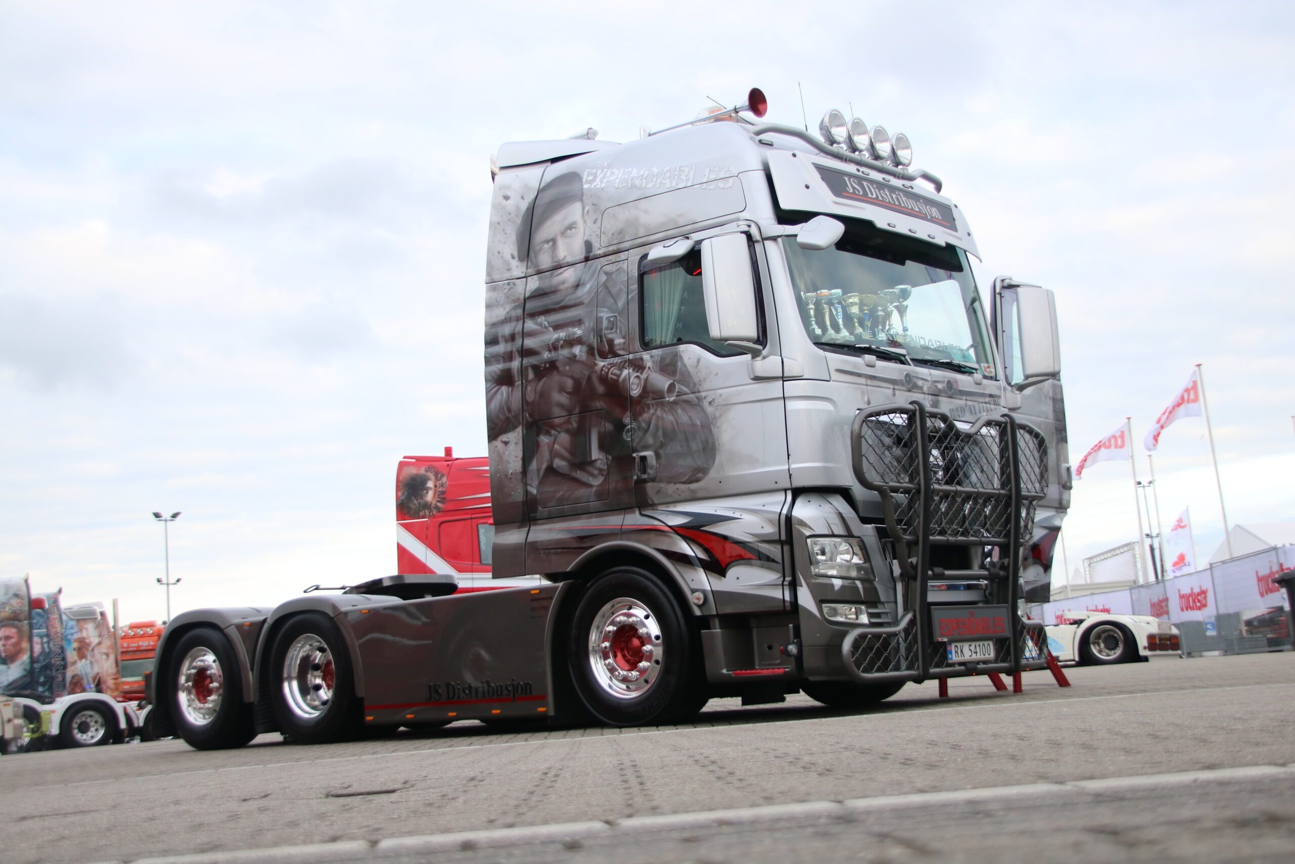 Voorbij de Mooiste Truckstraat vind je dit jaar opnieuw de Truckstar Showstraat. Op dit gewaardeerde deel van het festivalterrein staan meer dan honderd bijzondere trucks opgesteld, zowel uit Nederland als ver daarbuiten. Tussen alle showtrucks vind je ook een aantal mooie primeurs. Wat dacht je van Bertons nieuwe paradepaardje, ‘Vikings’? Deze bijzondere verschijning is het eindresultaat van de samenwerking tussen een aantal Nederlandse opbouwers. Daar mogen we best trots op zijn! Ook voor het eerst op het Truckstar Festival is ‘The Expendables’ MAN van Thomas Skjorestad uit Noorwegen. Deze strakke naloper staat op vrijdagavond al helemaal klaar voor de duizenden bezoekers die zich dit weekend zullen vergapen aan de vele subtiele details en het hoogwaardige spuitwerk.