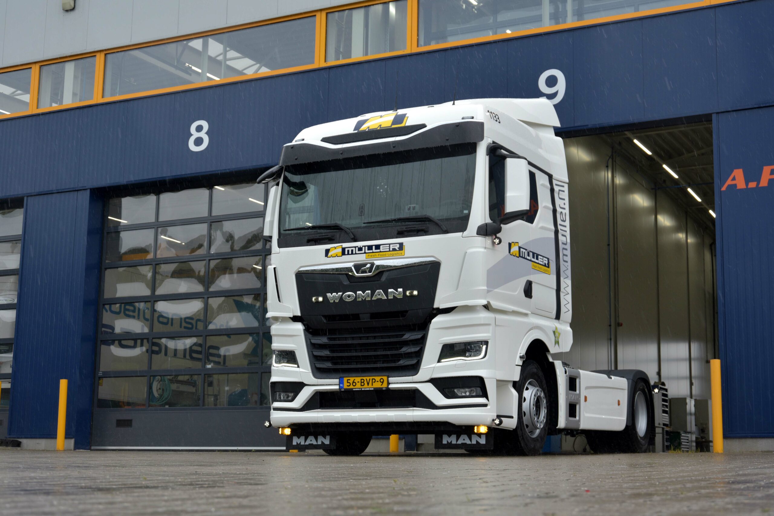 Müller Fresh Food Logistics uit Holten is een tevreden MAN klant. Dat blijkt wel uit een order van in totaal 200 trucks die momenteel worden uitgeleverd. Daarmee bestaat het wagenpark van het bedrijf voor 90% uit MAN trucks, en één WOMAN TGX.