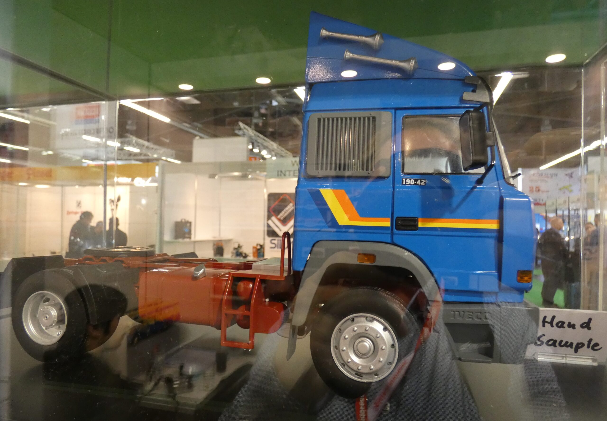 Nog een fabrikant van trucks in de grote schaal 1:18. Het leveringsprogramma omvat inmiddels modellen van onder meer Scania, Volvo, Mercedes en MAN. Daar komt nu deze Iveco Turbostar bij. Men wilde hem op de Spielwarenmesse voor de foto niet uit de vitrine halen maar dit geeft toch een indruk.