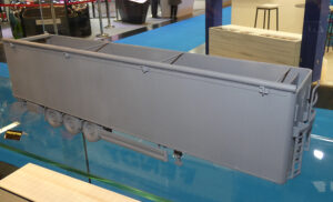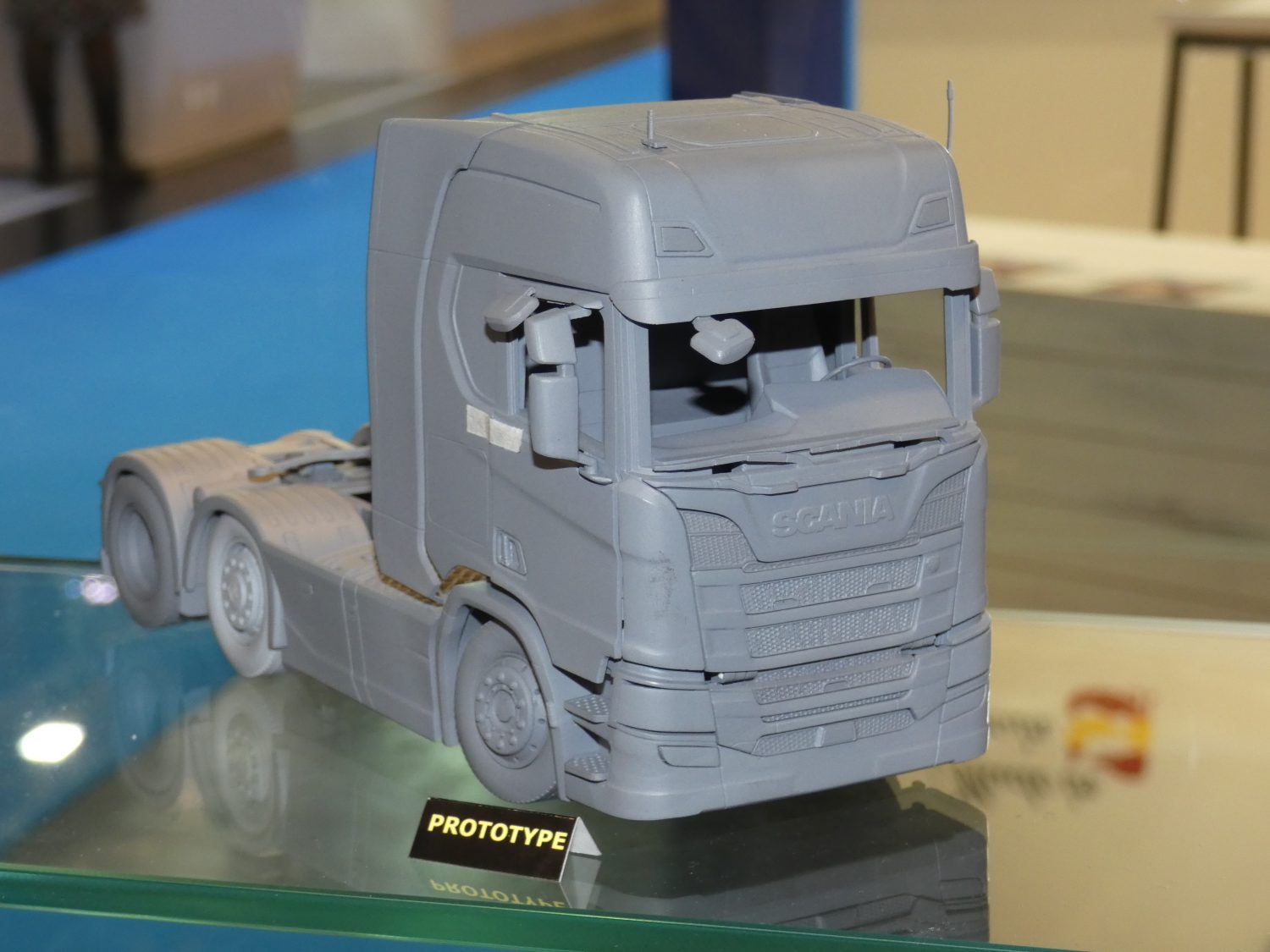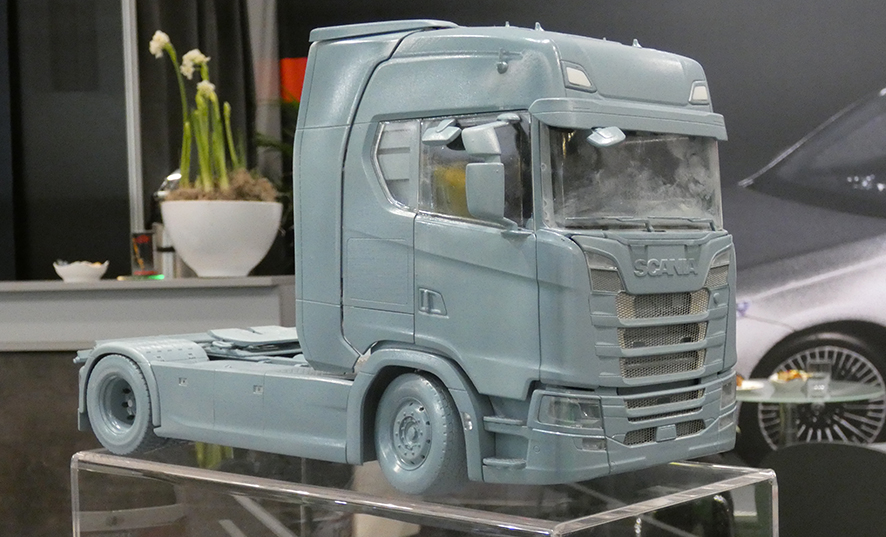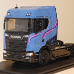 Vorig jaar verraste NZG met een enorme Mercedes Actros in 1:18 met naar keuze een containerchassis erachter of een autotransporter. Nu staat er op de stand een nog grof handmodel van de volgende 1:18 trekker, de Scania Next Gen. Te zien is dat het om de hoge S-cabine gaat maar een typeplaatje ontbreekt. Volgens medewerkers moet er nog wat ontwikkelingswerk gebeuren maar men hoopt de Scania begin 2021 op de markt te kunnen brengen.