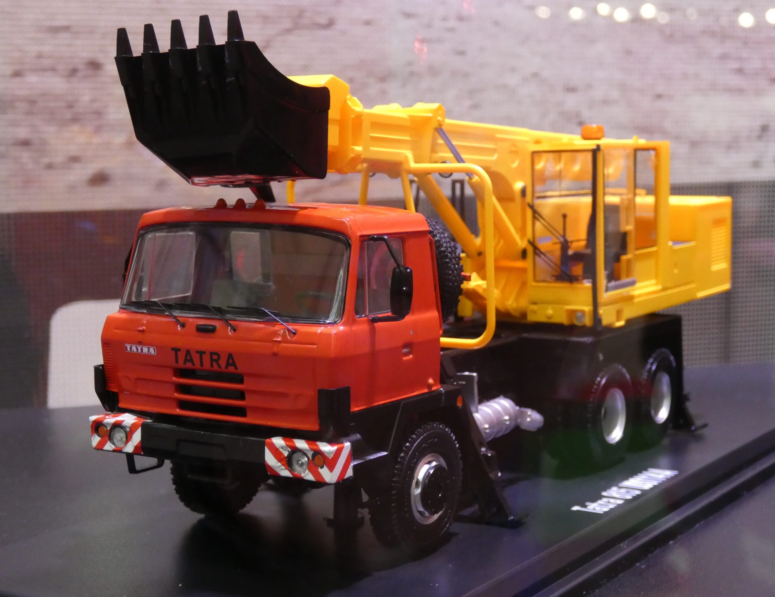 Op de Spielwarenmesse ontdekten we bij Herpa in de vitrine 1:43 modellen van SSM wat staat voor Start Scale Models. De Russische fabrikant brengt miniaturen van merken als Tatra en Kamaz, maar ook Skoda. Op de foto een Tatra 815 met kraan.