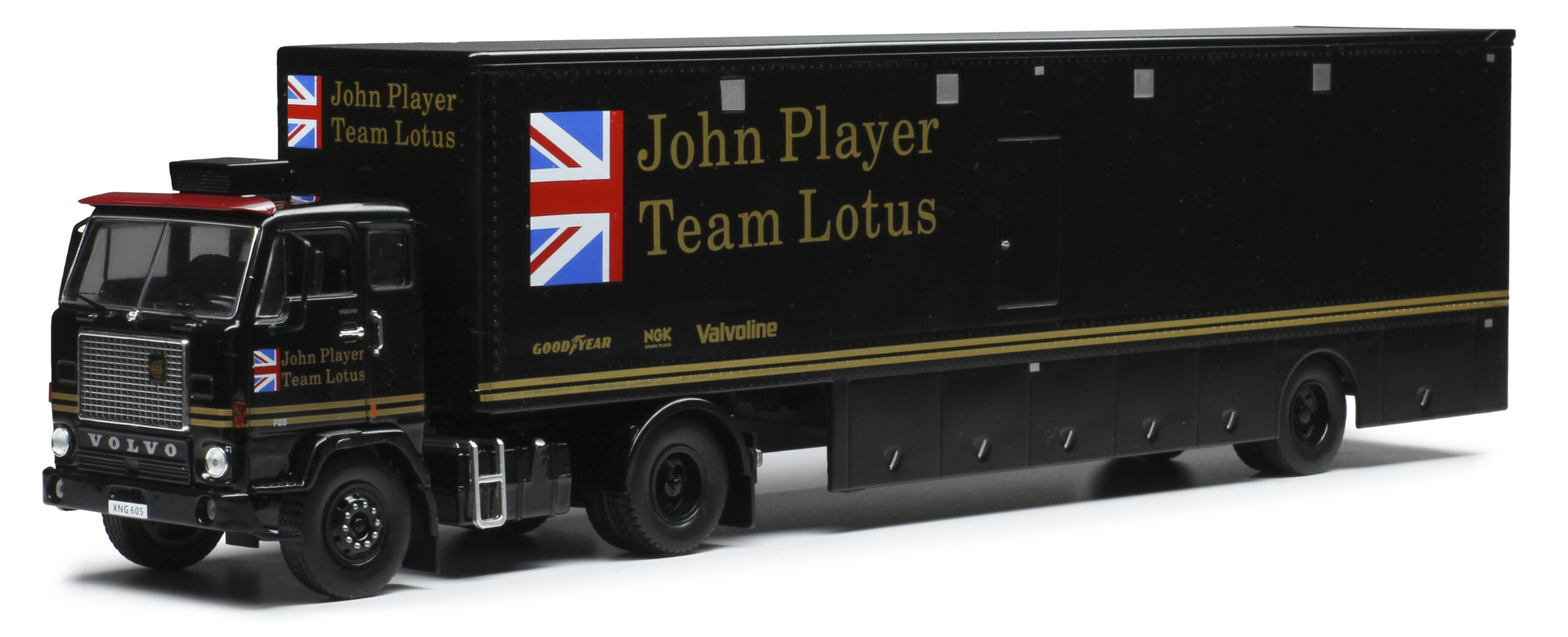 Wat betreft Europese vrachtwagens is de Magirus Jupiter 6×6 een leuke aanvulling maar nog veel leuker is de DAF 2600 trekker. Racetransporters zijn er in de vorm van de Mercedes 1632 in de kleuren van Kremer Porsche en de Volvo F88 in het zwart met goud van het John Player Special team. Die laatste is er overigens ook in Martini Racing kleuren.