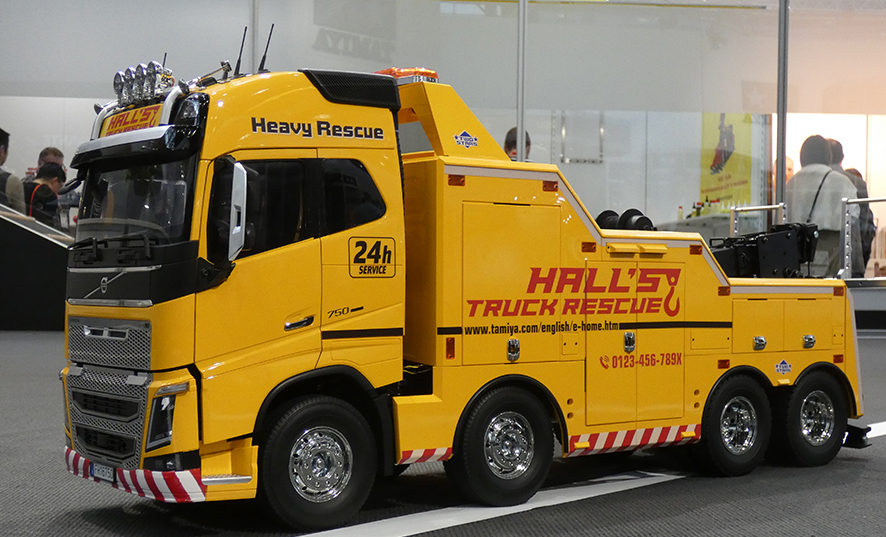 Ook radiografisch bestuurde trucks worden steeds mooier en gedetailleerder. Een goed voorbeeld is deze Volvo FH16 750 Globetrotter bergingsauto die op een testbaan zijn rondjes reed. De schaal is 1:14 dus het is een flinke jongen maar bijna niet van echt te onderscheiden.