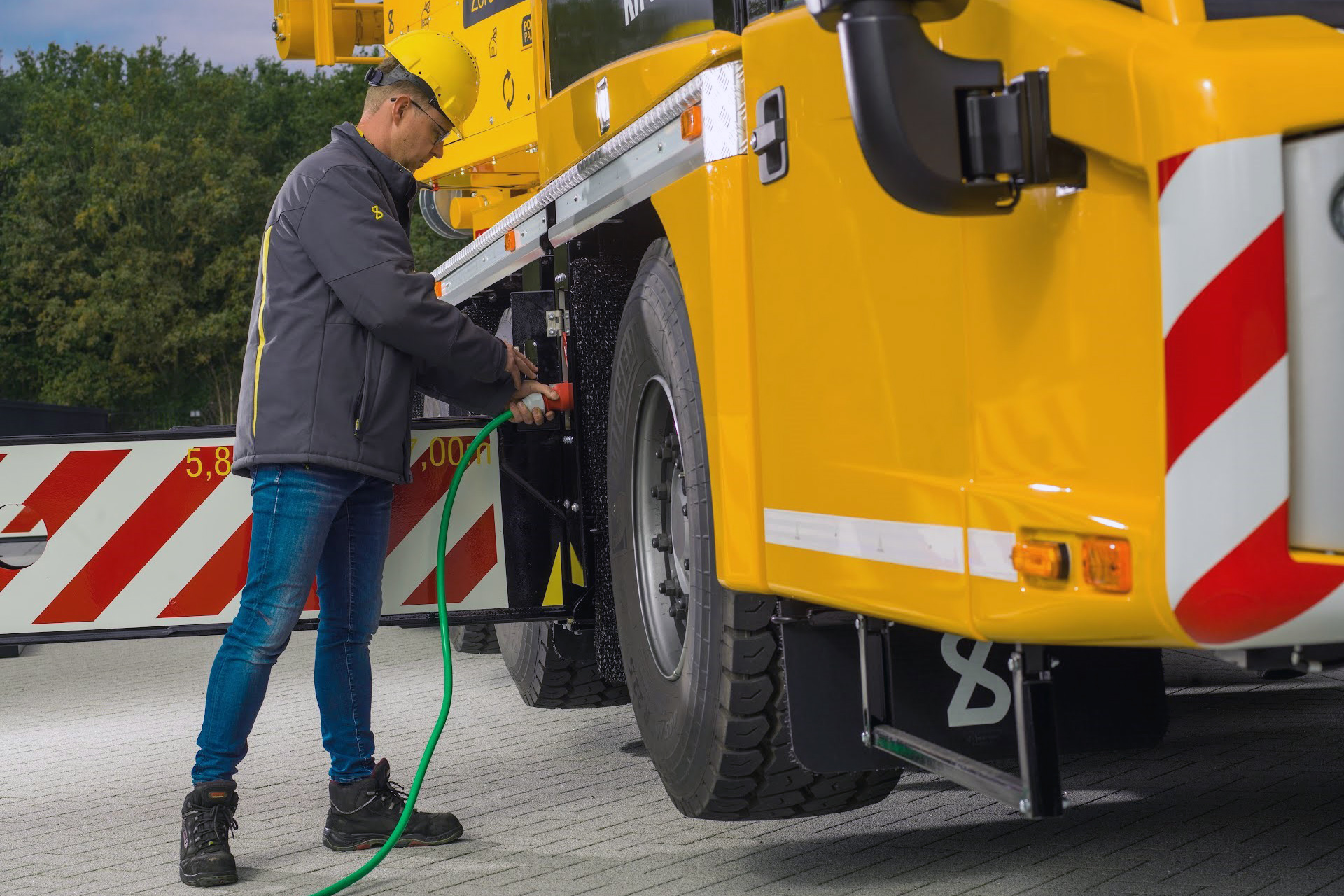 Het nieuwste model, de SK487-AT3 City Boy, kan ook volledig elektrisch rijden. Daarmee kan de lokale uitstoot volledig worden gereduceerd. Deze elektrische hijskraan maakt emissieloos werken in iedere stad mogelijk.