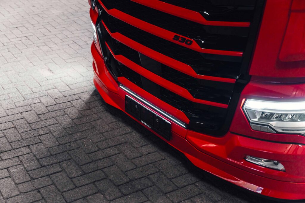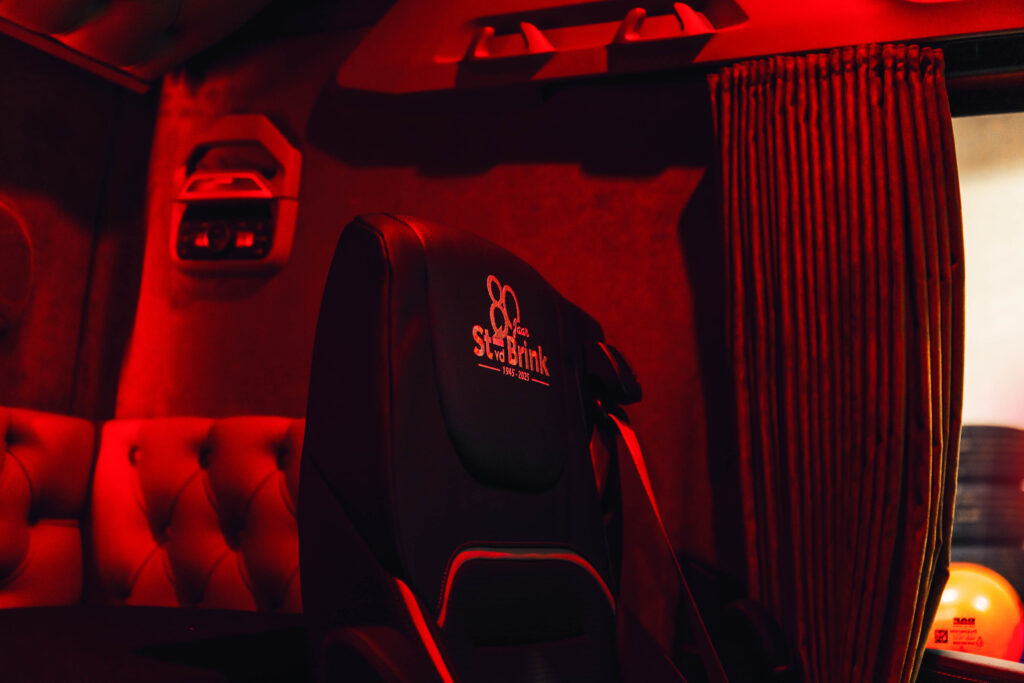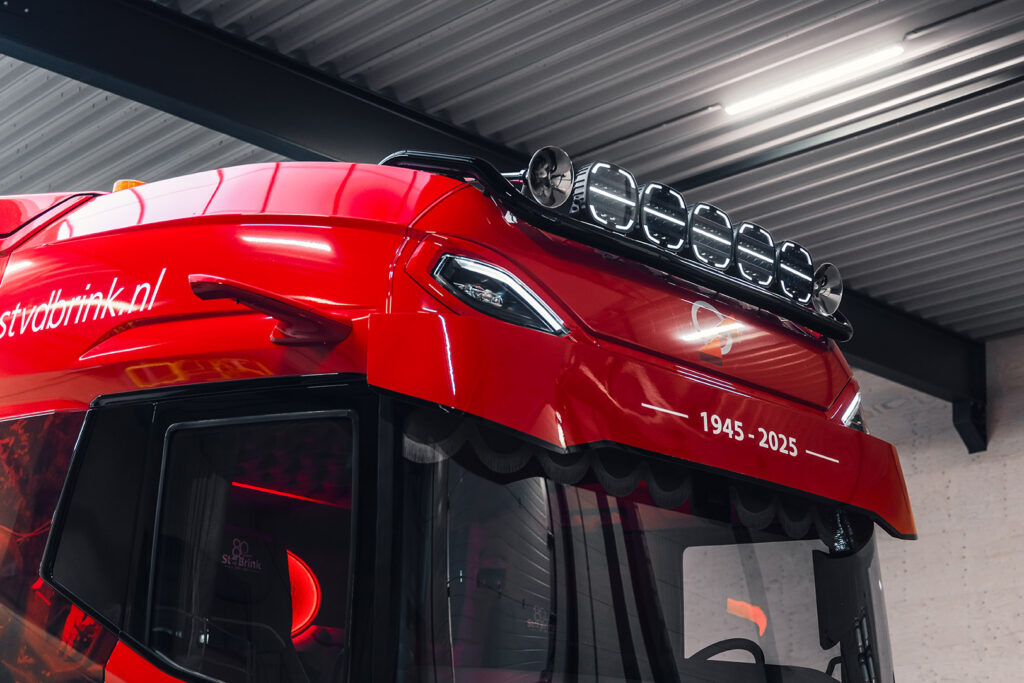 Niet alleen het ontwerp trekt de aandacht, ook de verlichting. Voor extra groot licht is gekozen voor Phantom Series verstralers met dagrijverlichting. Ook is de DAF voorzien van extra werkverlichting en contourverlichting rondom. In samenwerking met Tralert is een compleet verlichtingspakket samengesteld. Voor het interieur is geschakeld met Truckstyling Lunteren. Ze hebben samen met het team gezorgd voor unieke maatwerkdetails. Waaronder een gepersonaliseerd dashboard, een speciaal jubileumlogo in de stoelbekleding en in de achterwand.
