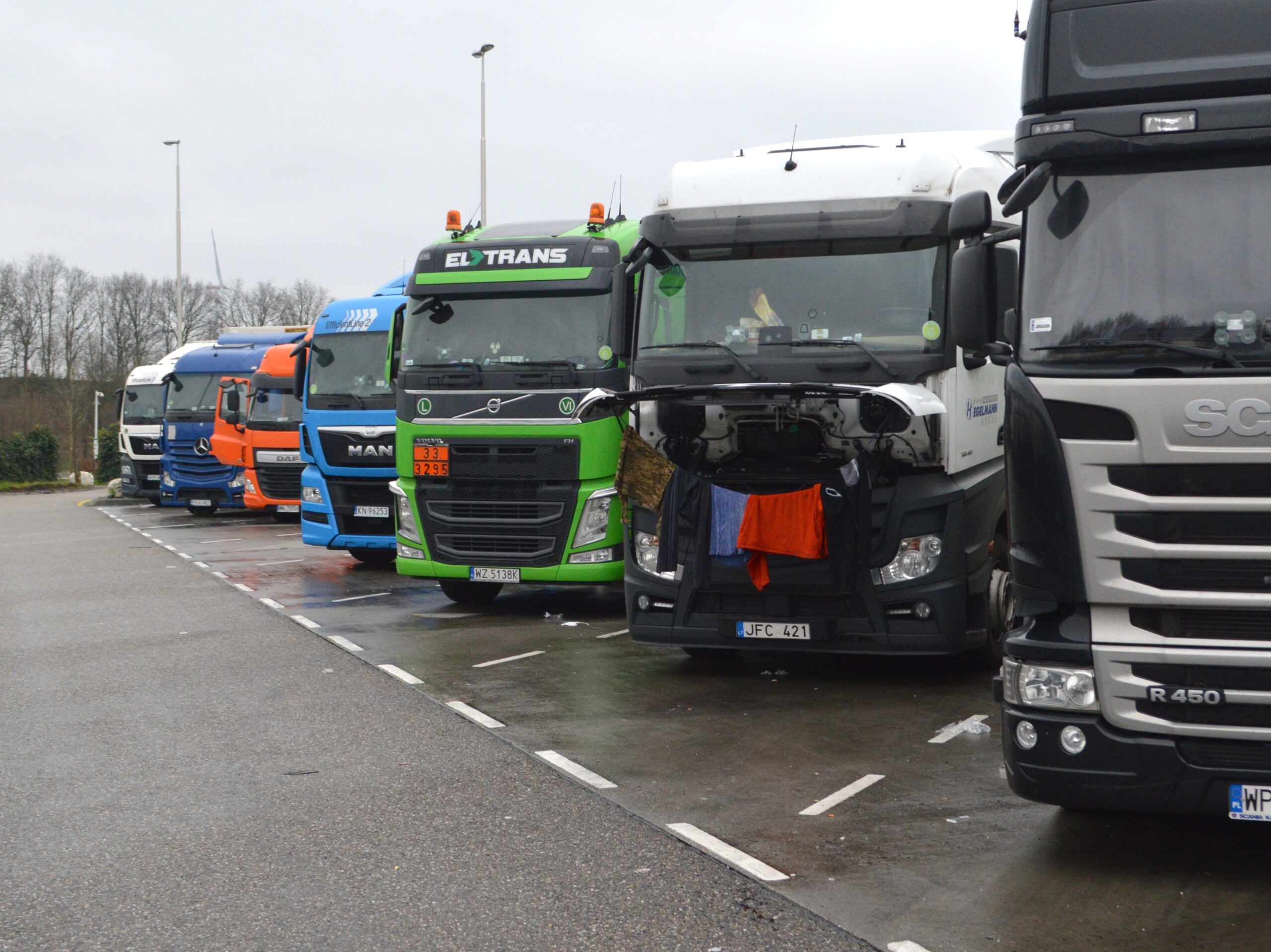 Op parking Venlose Heide spraken wij onder andere met Bubhakov Serhii, chauffeur op een oranje DAF CF met Pools kenteken. Hij vertelde dat hij afkomstig was uit Charkov in de Oekraïne en dat hij in dienst is van een Pools bedrijf waar hij een basissalaris heeft van 45 euro per dag. Inclusief toeslagen komt hij op een inkomen van 1500 euro per maand. Dat is ongeveer drie keer zo hoog als wat hij in Oekraïne zou verdienen.