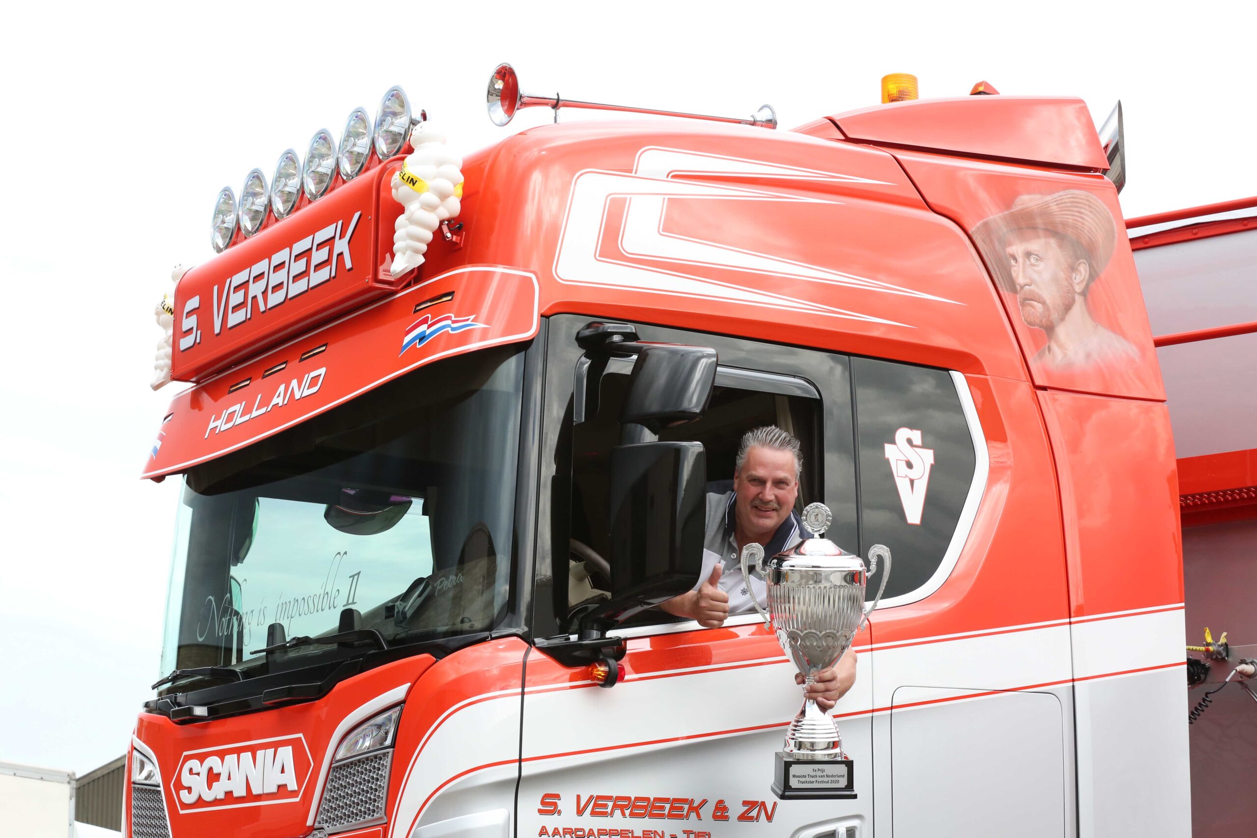 Het heeft resultaat gehad, want volgens het oordeel van de jury is de combinatie van Verbeek van voor tot achter en van onder tot boven helemaal in orde. Het spuitwerk (met special paint geïnspireerd op het schilderij De Aardappeleters van Van Gogh) is perfect en de auto is ook wat opbouw betreft een absolute winnaar. Het is de mooiste truck die je anno 2020 op de weg kunt tegenkomen.