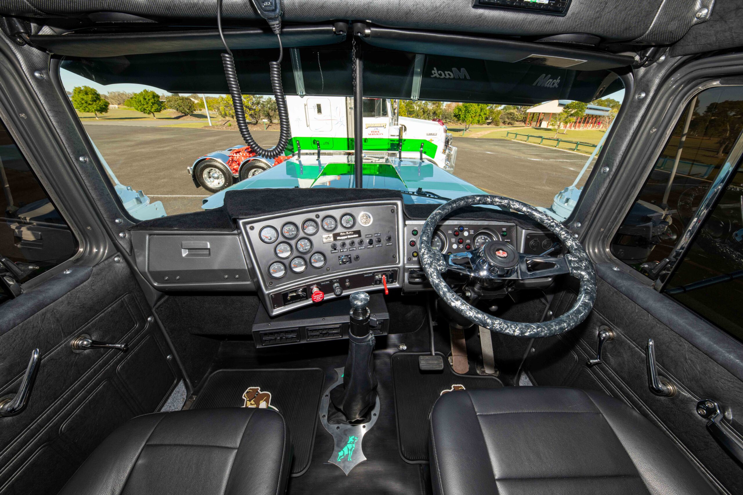 - Onder de kap huist een Mack-motor met 500 pk, destijds een imposante hoeveelheid.