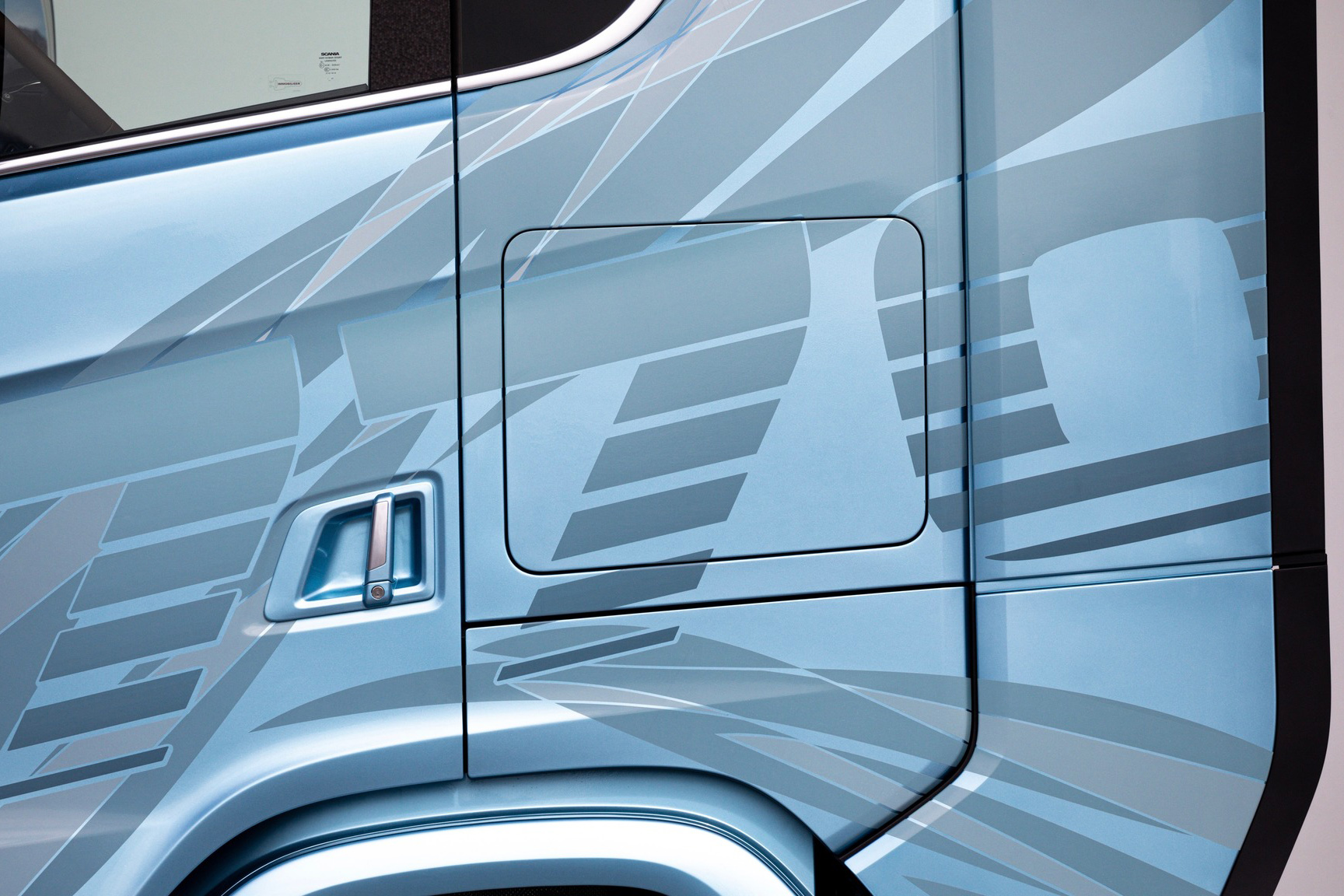 Slechts honderd van deze vrachtwagens zullen worden geproduceerd in de werkplaats van Svempa in Zweden. De trucks kunnen worden gespecificeerd met veel verschillende exterieur- en interieurstijlelementen, zoals velgen, uitlaten, lederen stoelen, stuurwiel, panelen, kappen, handgrepen en meer. “Frost” is blauw en “Fire” is oranje.
